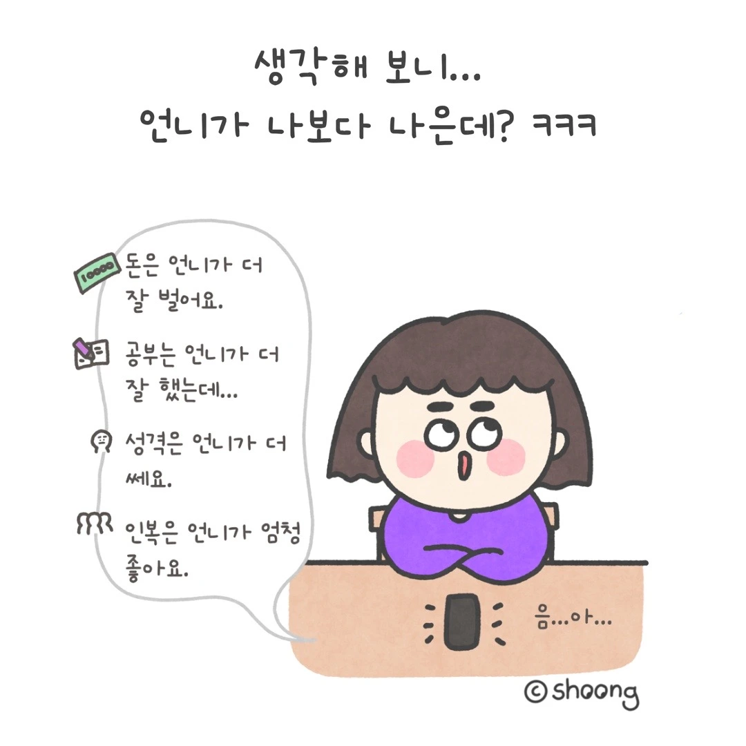 “아... 그러고 보니 언니가 나보다 다 나은데? “라는 생각이 새삼 들었다.