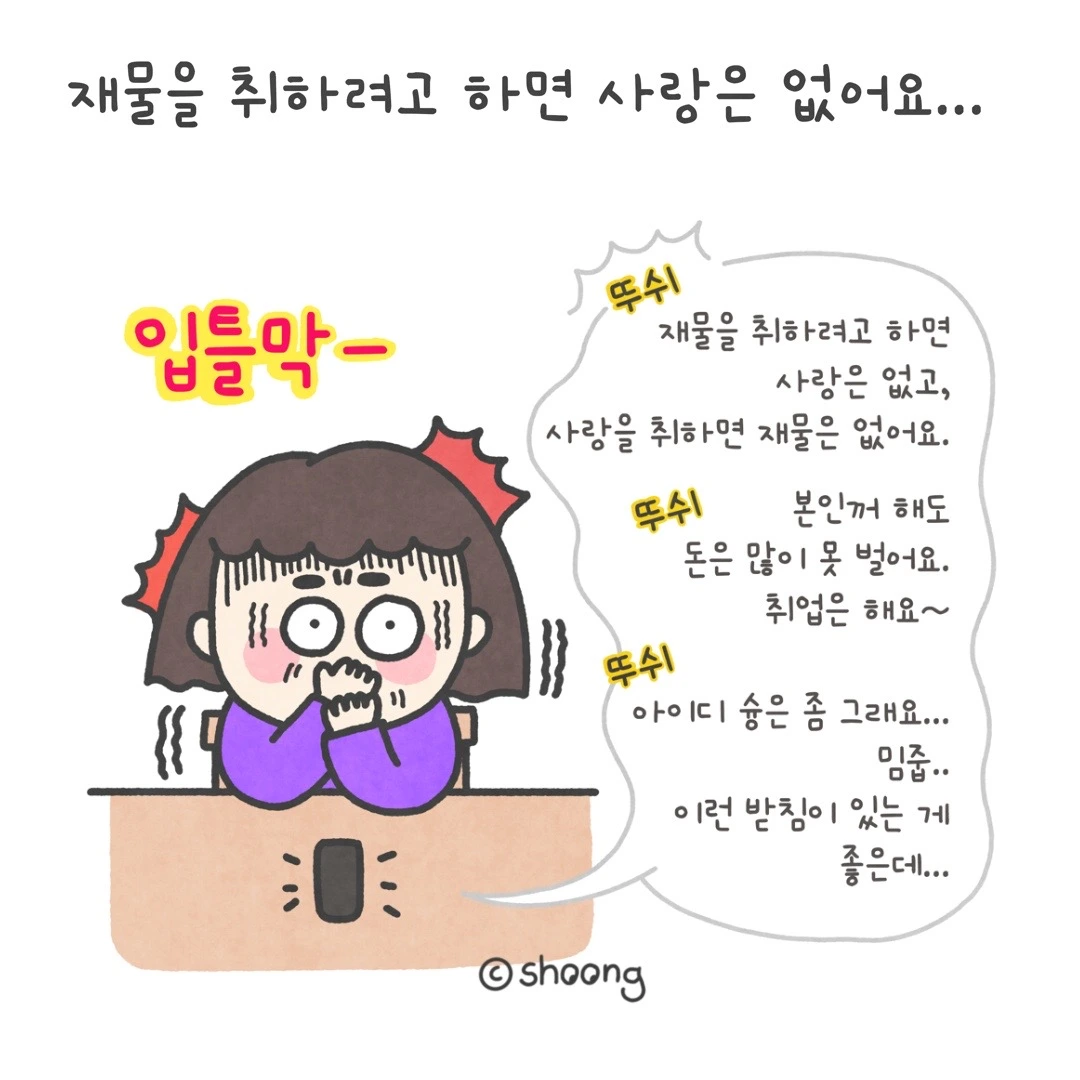 “아... 저... 슝님은 재물을 취하려고 하면 사랑은 없고, 사랑을 취하려고 하면 돈은 없어요”