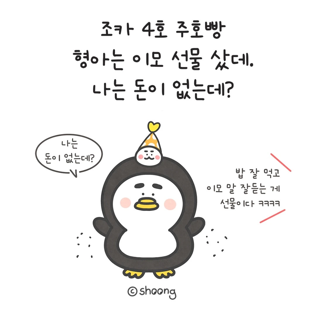 우리 조카 4호에게 횽아는 선물 사줬는데 우리 주호빵은 선물 안 샀냐니까, 세상 억울한 표정을 지으며