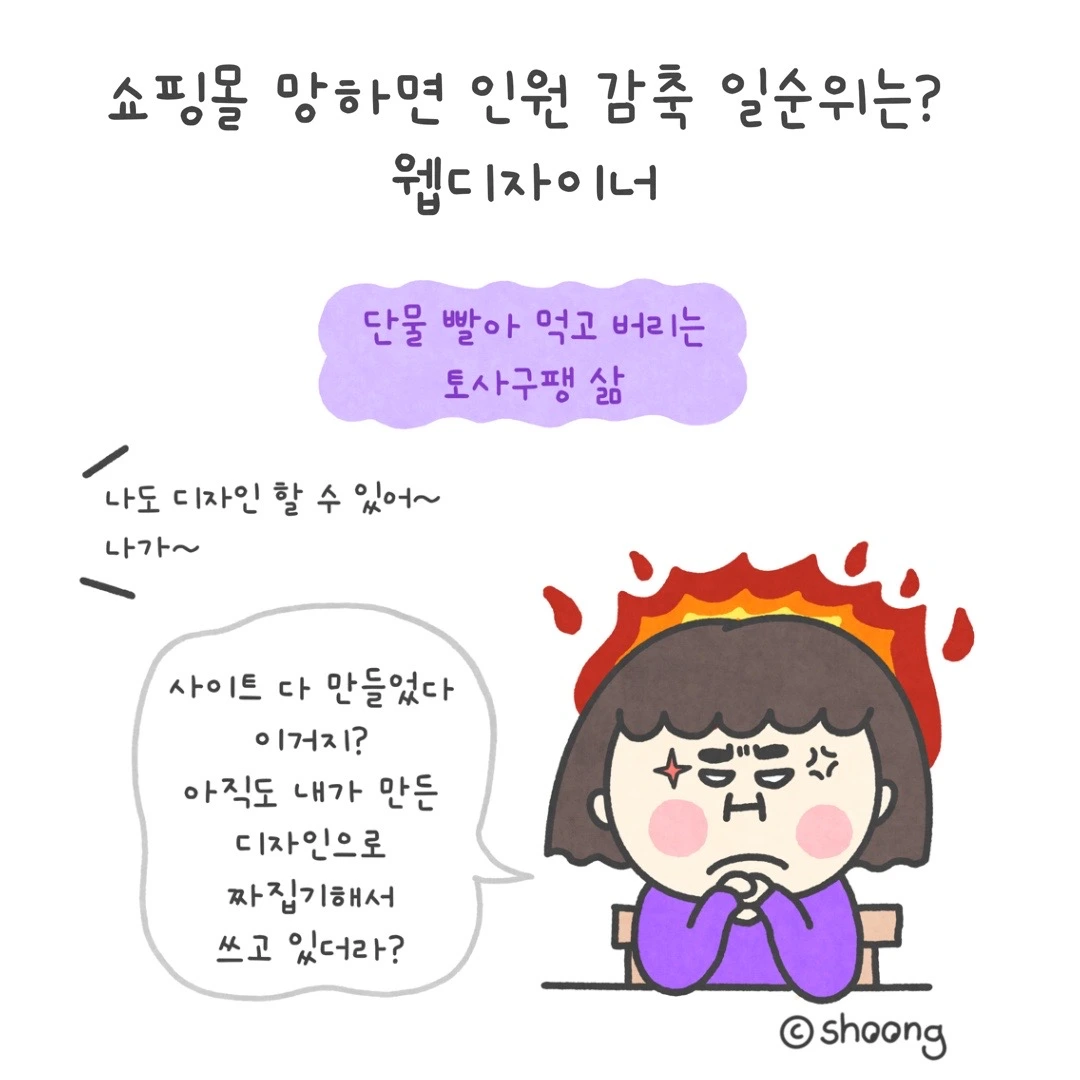 이렇게 일을 해도 쇼핑몰이 망해가기 시작하면 인력 감축 일 순위는 웹디자이너다.