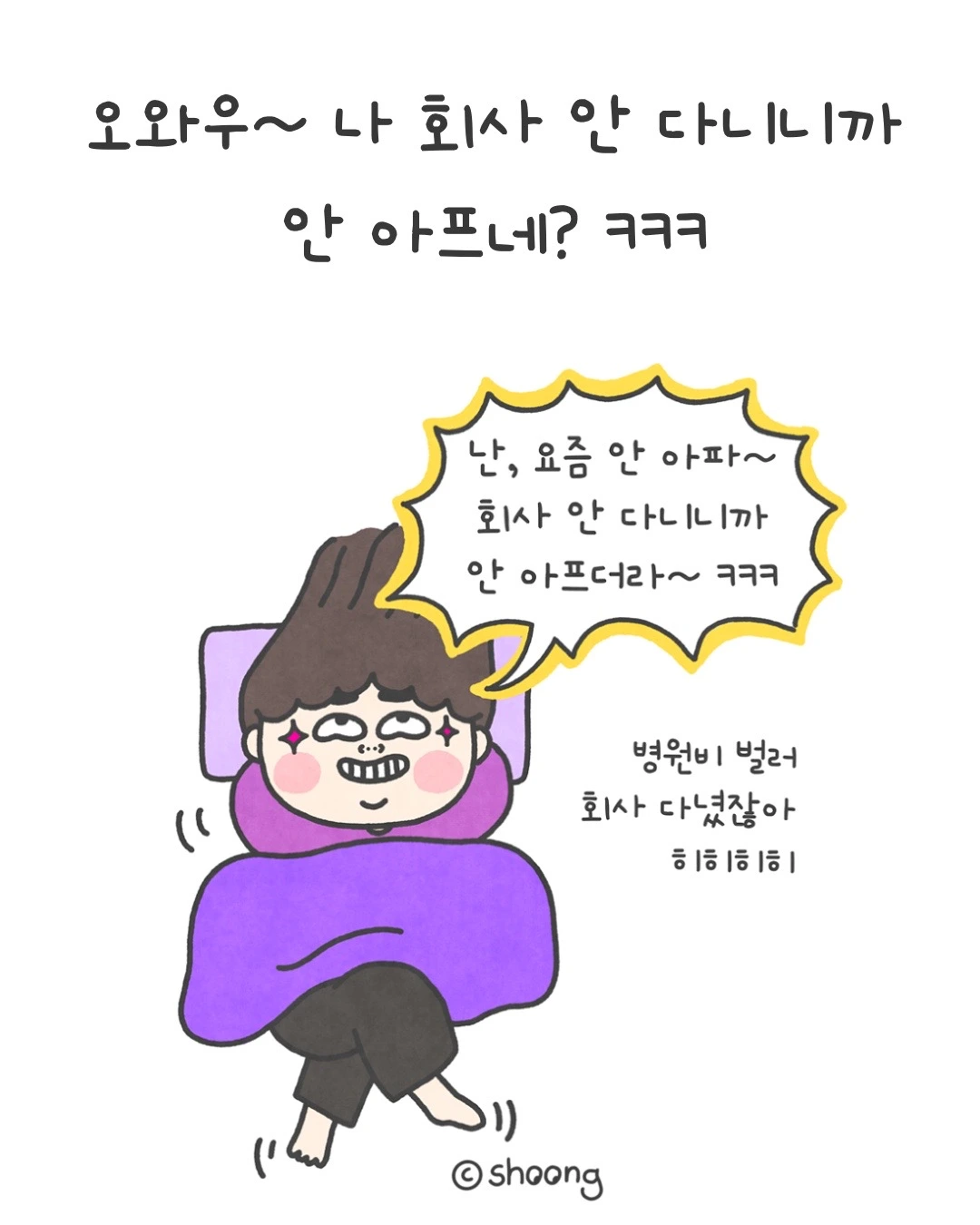 “나, 회사 안 다니니까 안 아파 ㅋㅋㅋㅋㅋ”