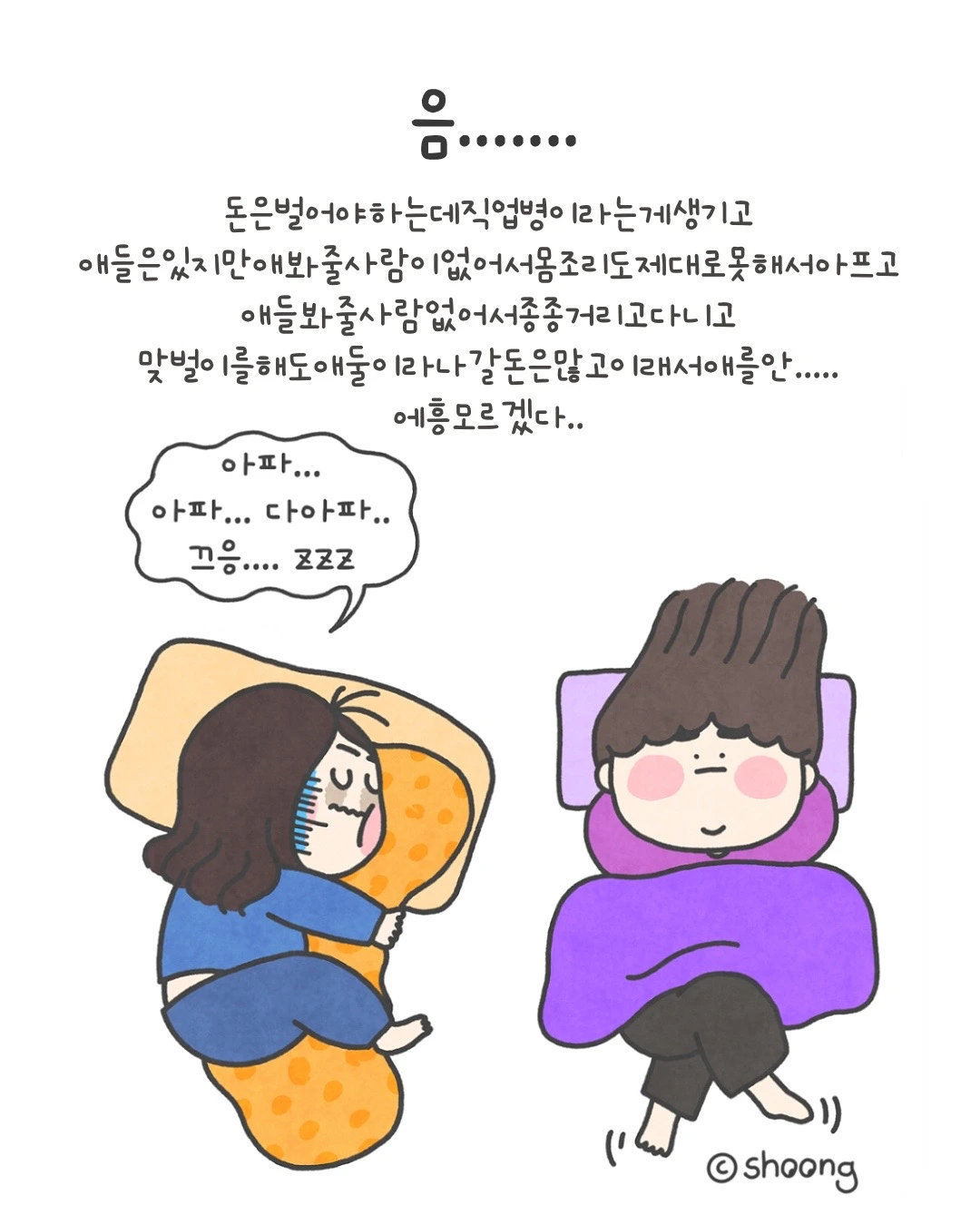 “회사 다니는 건 좋은데, 둘째 낳고 몸조리를 제대로 못했더니 온몸이 다 아파...”