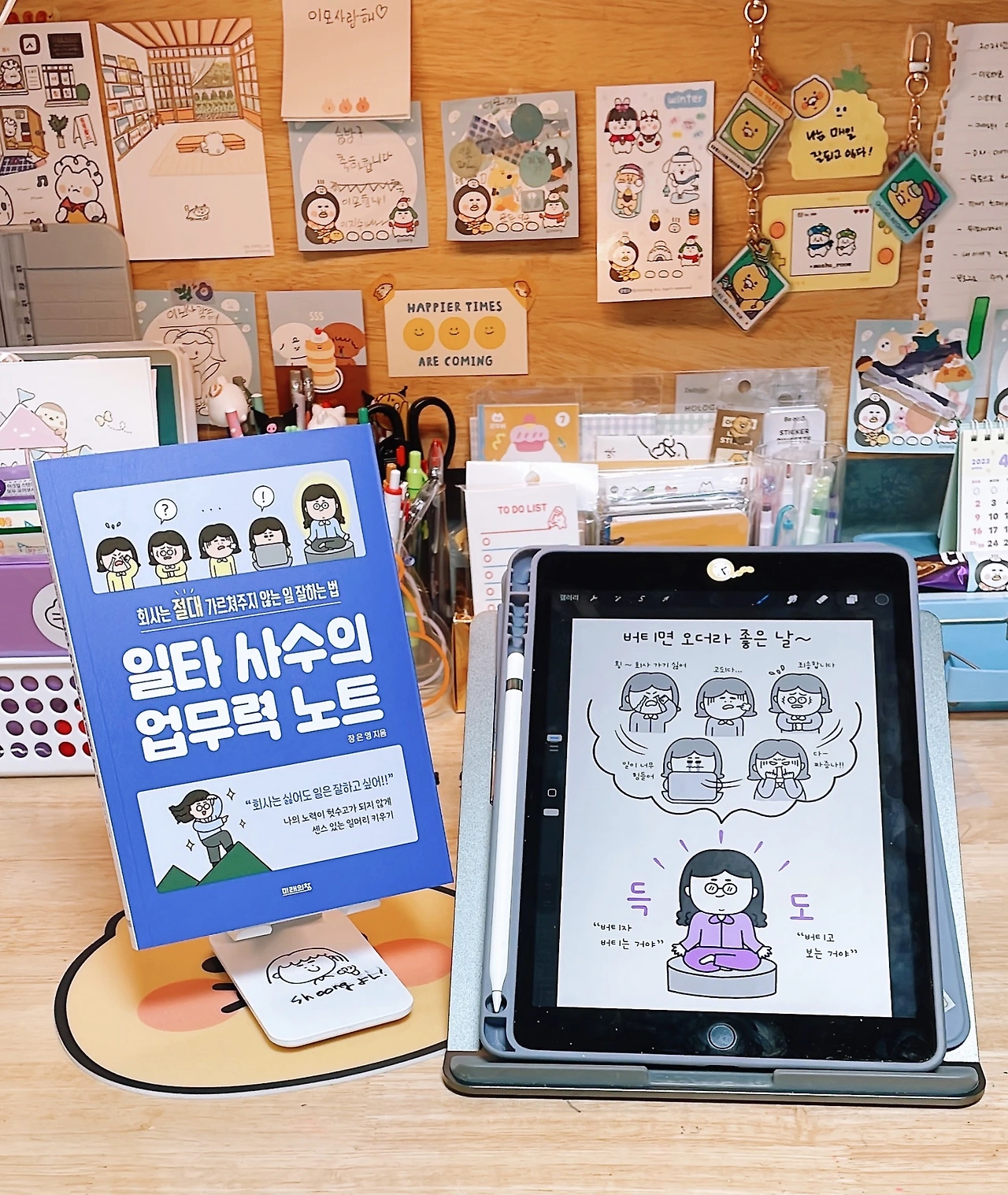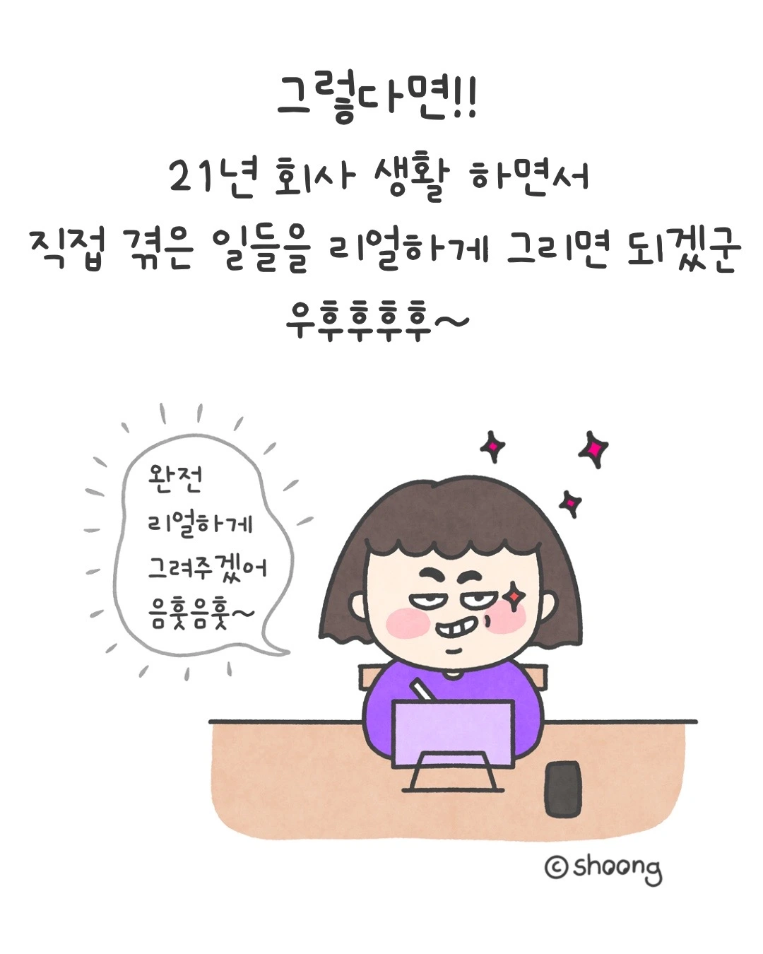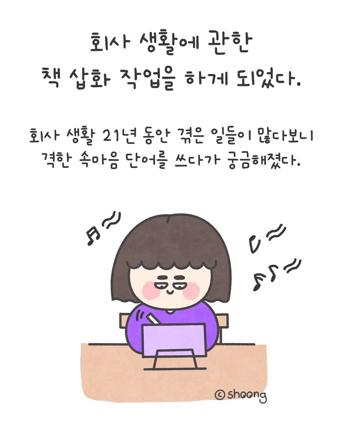 회사생활 이야기를 책 내용에 맞게 그림을 그리는 건데 21년 회사 생활을 하는 동안 안 겪어본 일 없이 이런저런 일을 겪다 보니 아이디어가 넘쳐났다.