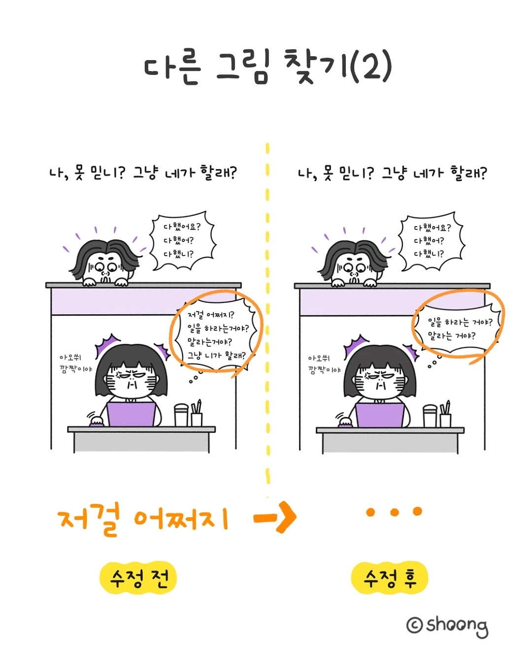직장인들이 극 공감할 수 있게 멘트를 썼는데 착하게 돌려 말하는 걸로 수정이 돼서 조금 아쉽기는 했다.
