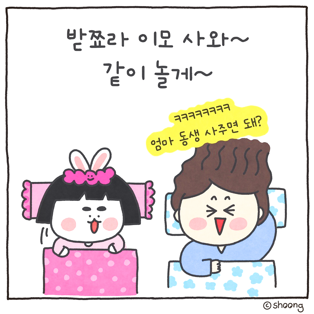 슈뚱 엄마랑 받쬬라 이모 얘기 자주하나 봐? 풉~
