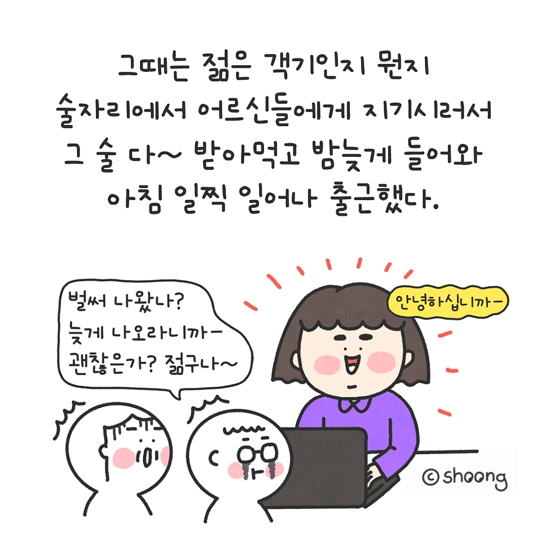지금은 상상도 못 할 주 6일 근무를 할 당시 5일을 술을 마시러 다녔다.