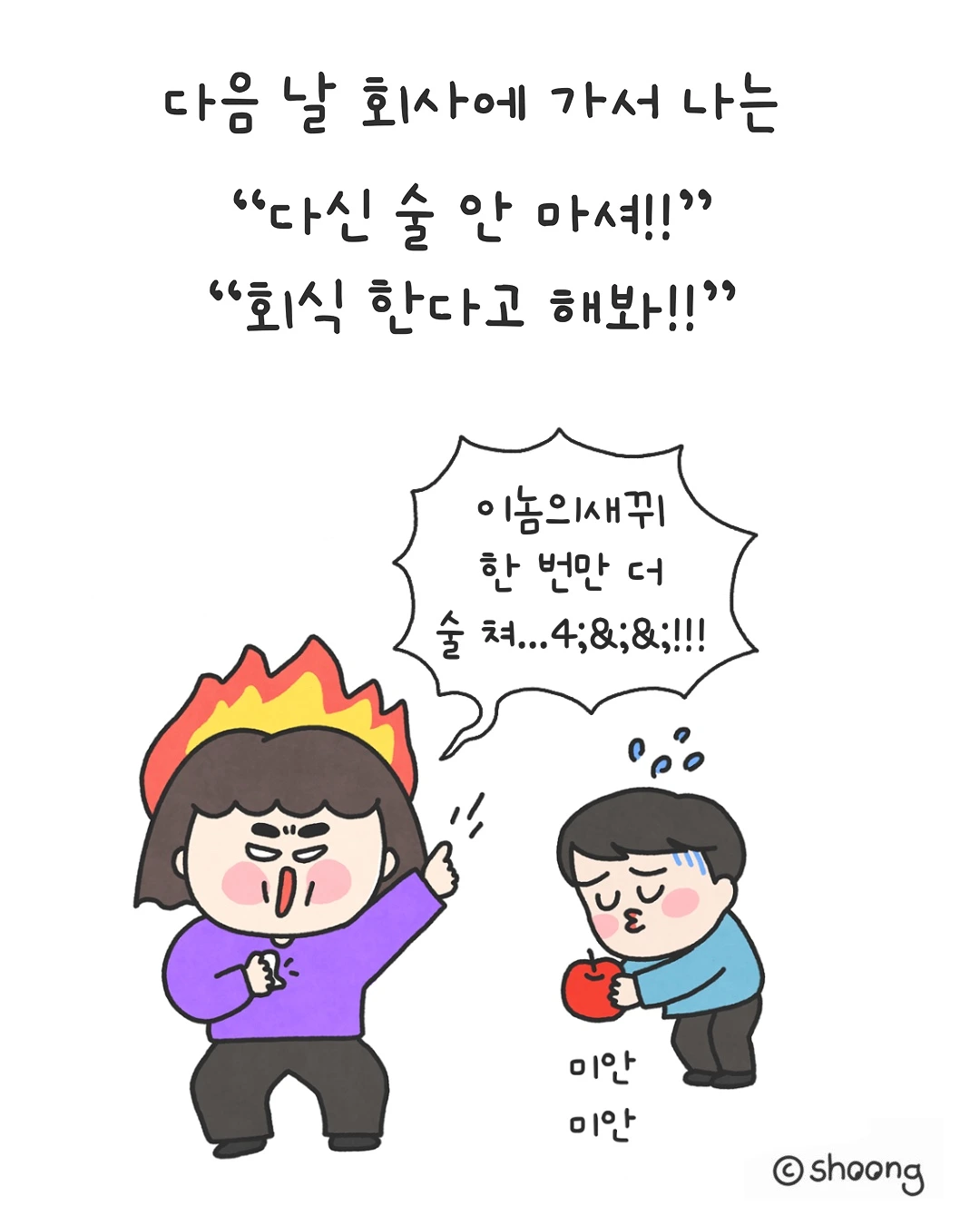 나는 그 뒤로 정말로 술을 마시지 않았다. 퇴근 후 동료들과 매일 마시던 술도 끊고, 팀 회식에는 참여하지만 술은 마시지 않고 밥만 먹고 나왔다.