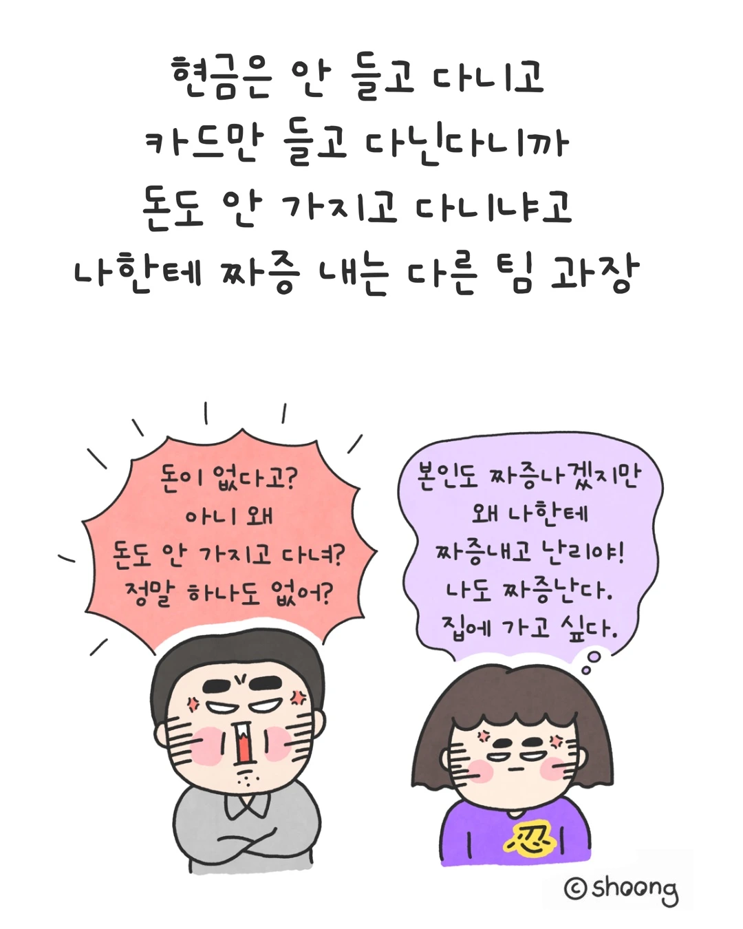 다른 팀 과장님은 나에게 현금이 있냐고 물으셨다.
