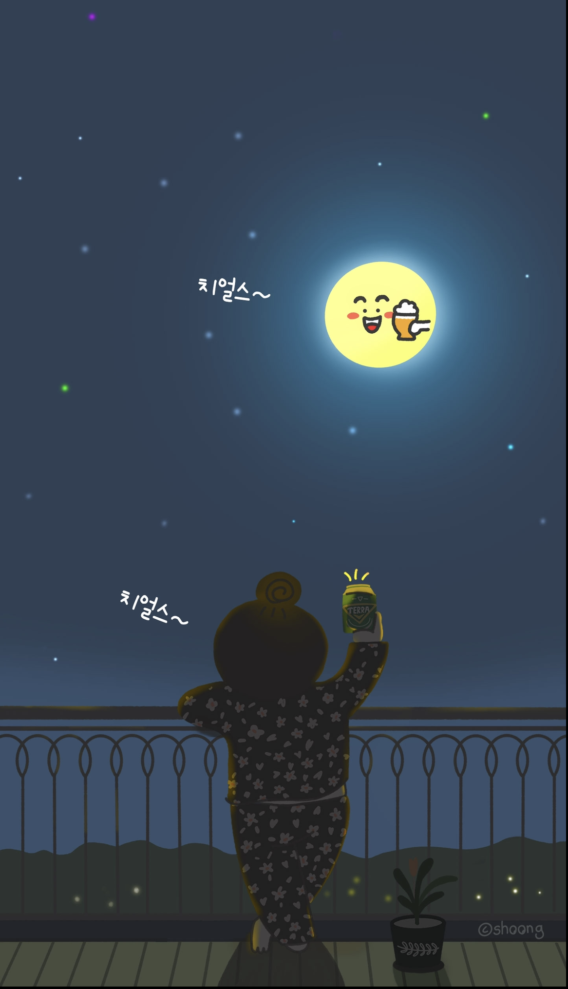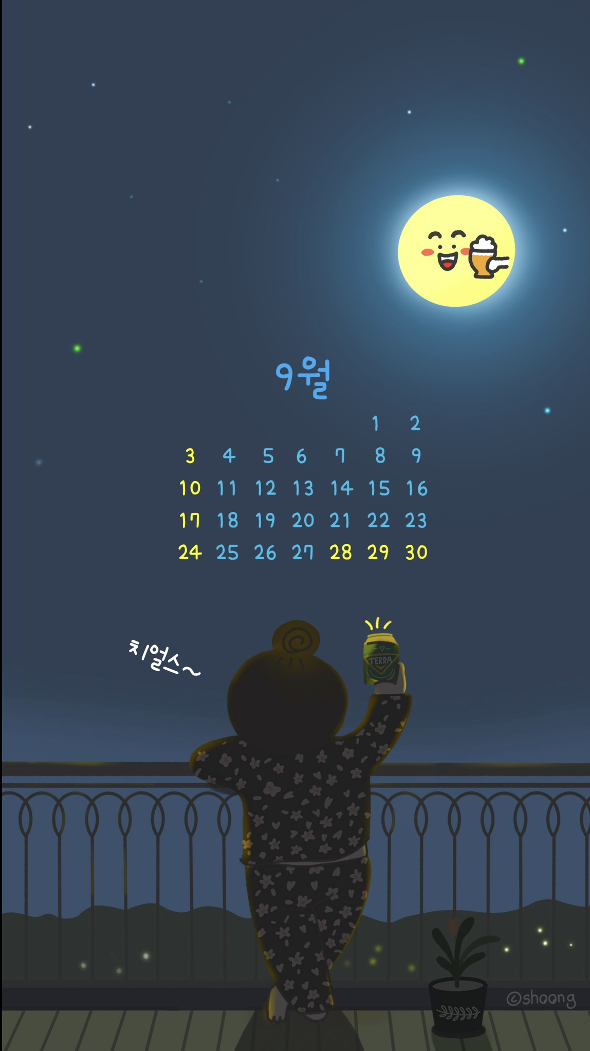 - 보름달 달빛 아래 치얼스~ 달력 배경화면