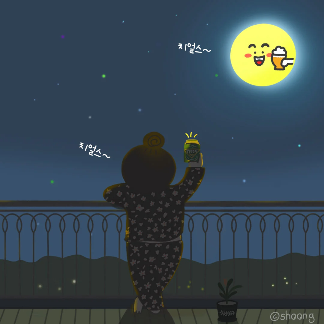 환한 달빛 아래 맥주 한잔 마시는 기분이란~ 크-