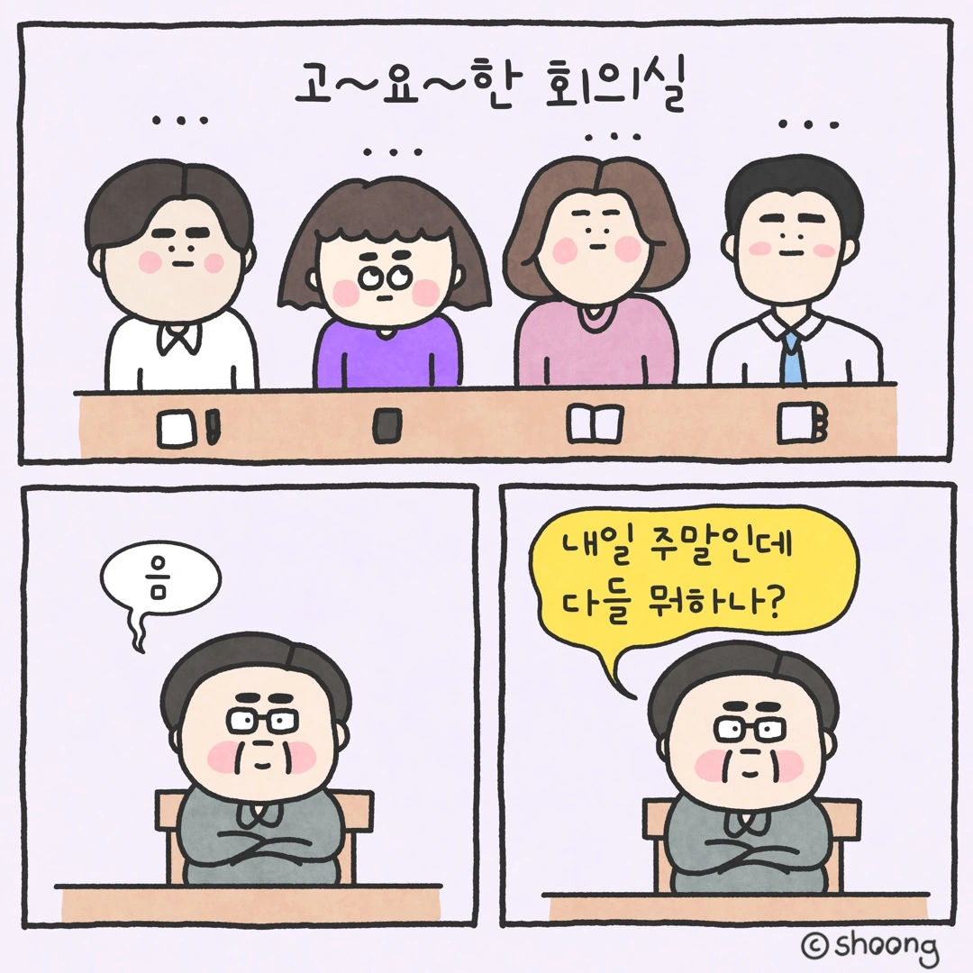 금요일 오후, 회의실에 모인 팀원들