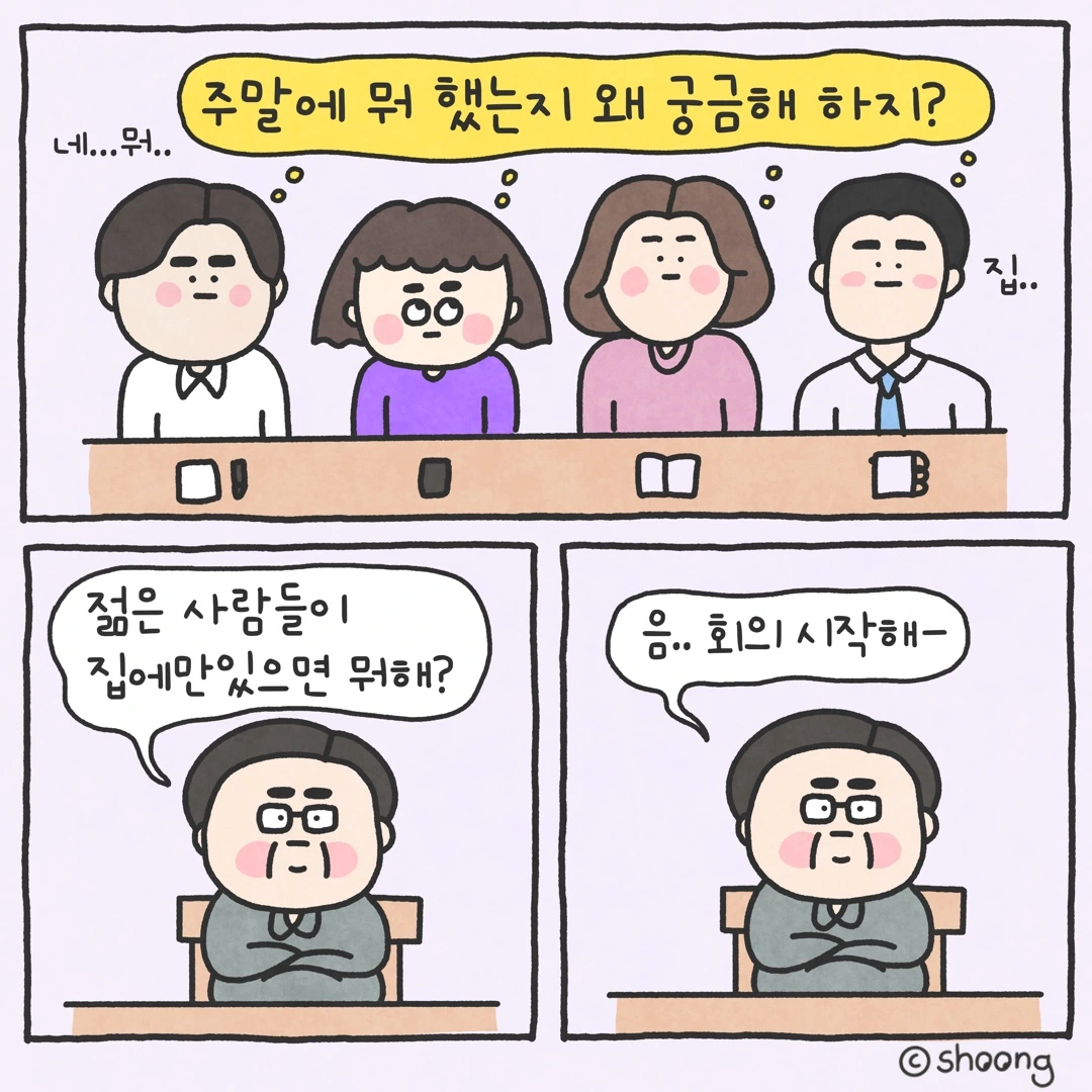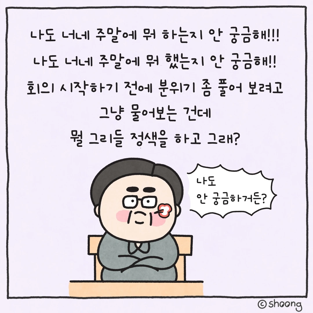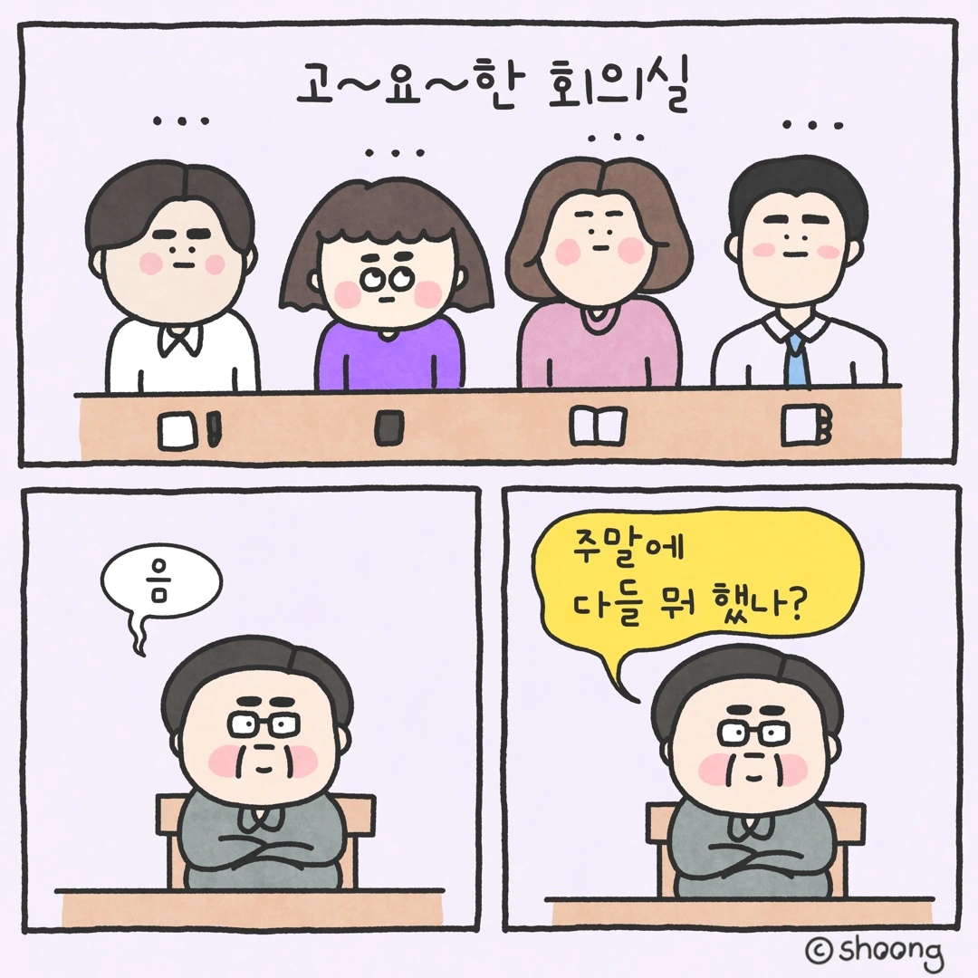 “그냥 회의실 분위기 안 좋으니까 말이라도 붙여볼까 그런 거지!!