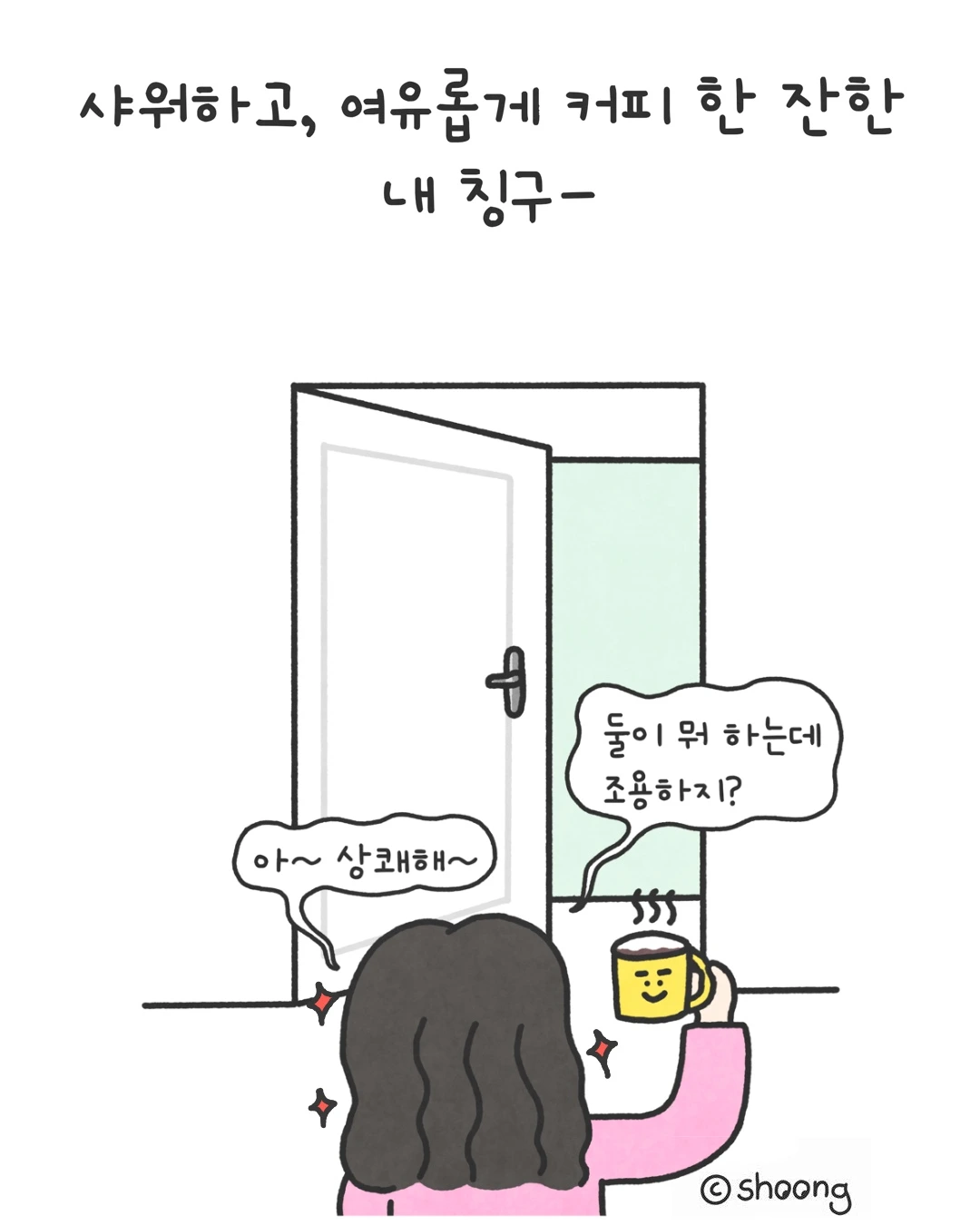 잠시 후 말끔한 모습으로 커피를 타서 들어온 친구