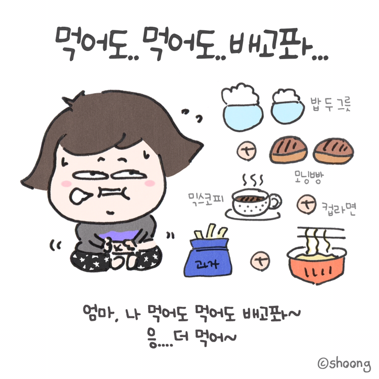 엄마한테 "엄마, 나... 먹어도 먹어도 자꾸 배고파"