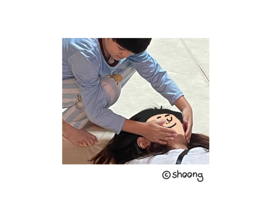 토닥토닥이라 함은 안아서 어깨를 토닥토닥해 주는 걸로 알고 있는데 ‘대’ 자로 누워 눈을 감고 있는 엄마를 어떻게 토닥토닥해줘야 할지 고민 중이다.