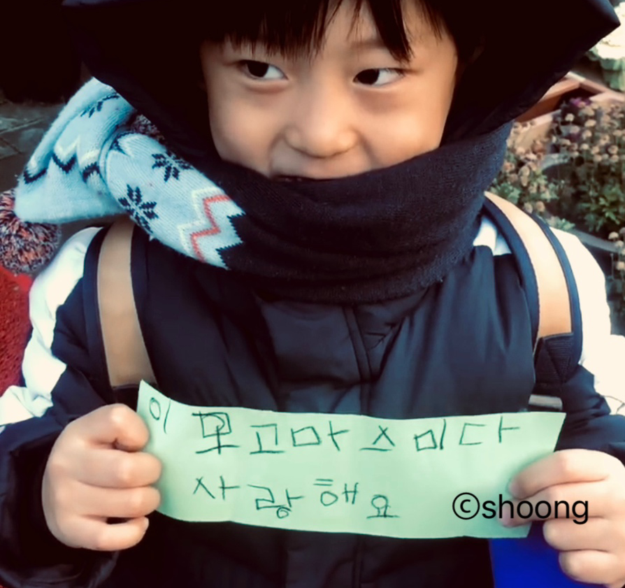 방학 때 “이모가 유치원에 데리러 갈 거야”라고 얘기하고 데리러 갔더니 나를 보자 주머니에서 주섬주섬 뭔가를 꺼내 쑥스럽게 펼치는 주발이