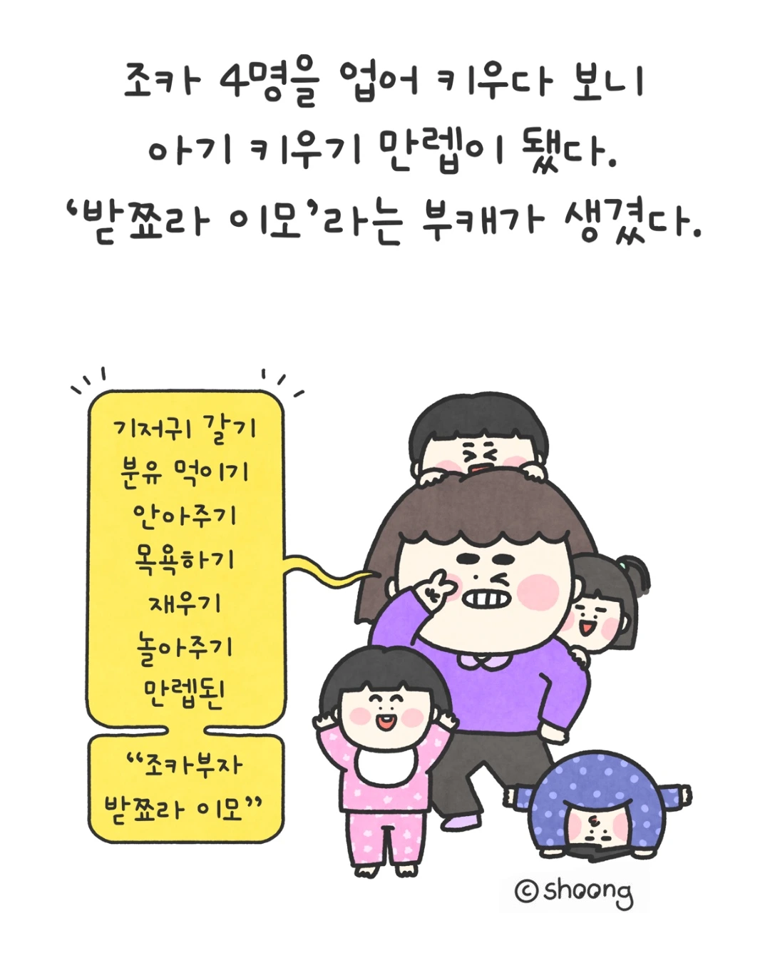 그리하여 생겨난 나의 부캐 조카부자 ’받쬬라 이모‘가만 들어졌다.