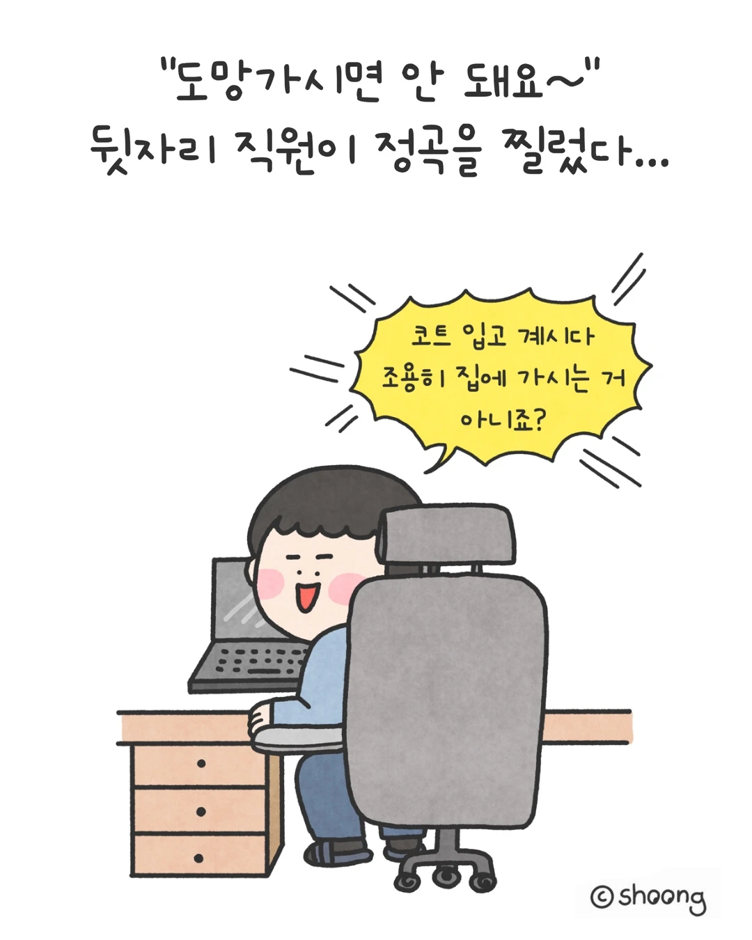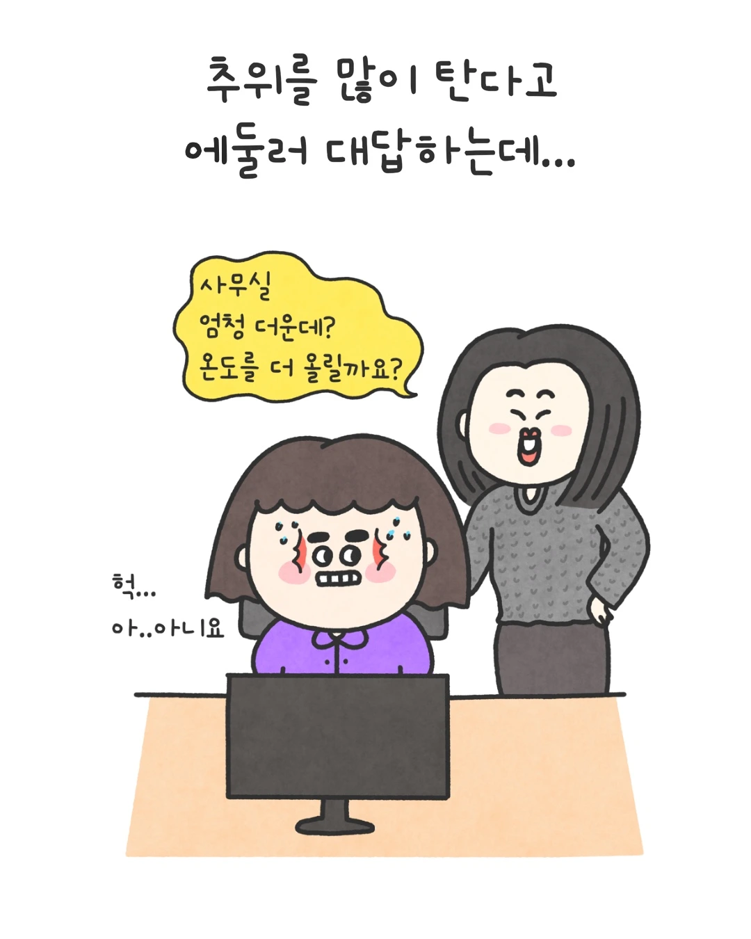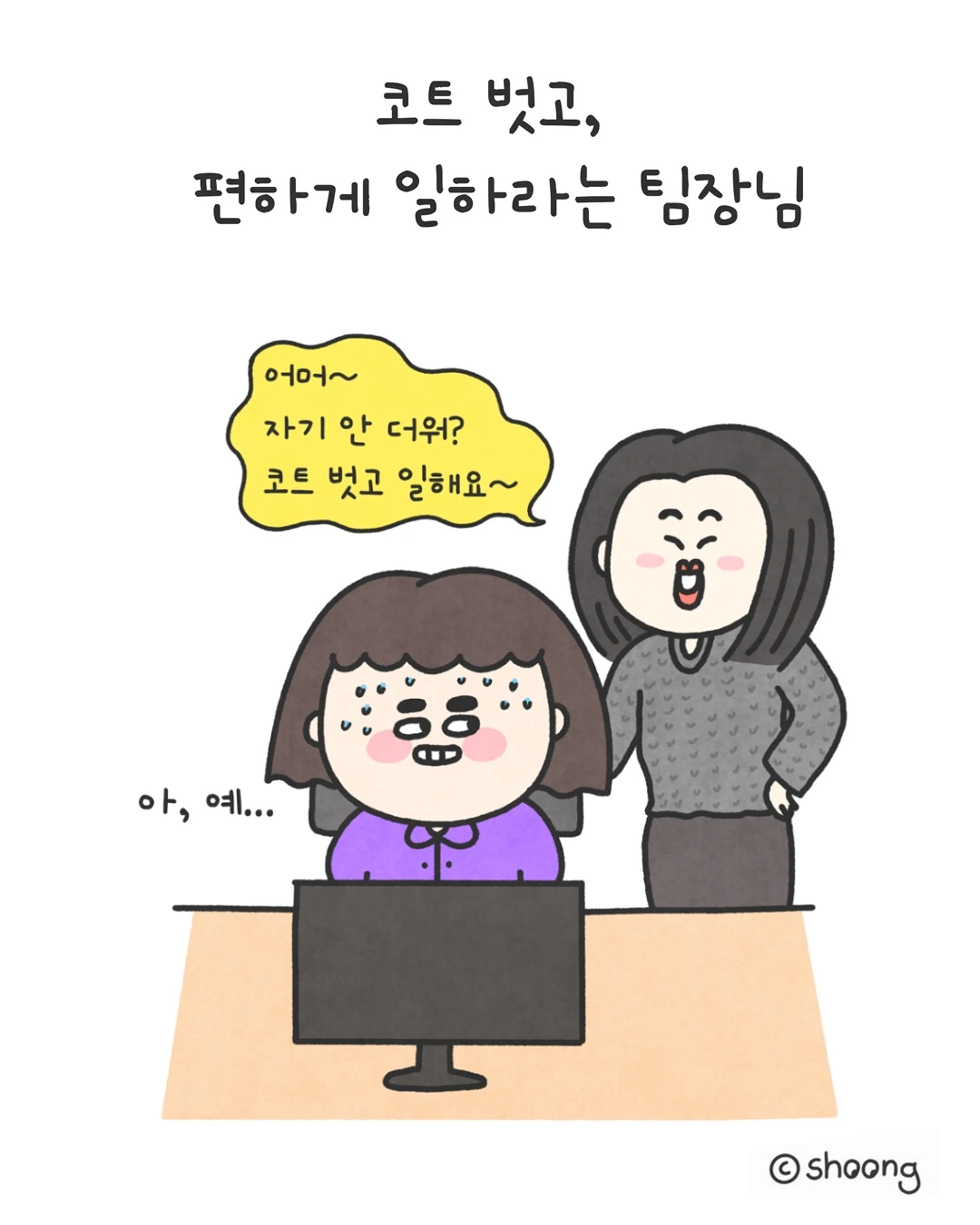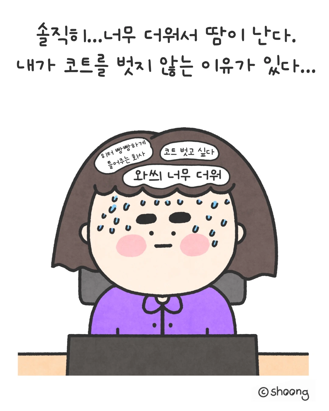 “사무실 엄청 더운데 코트 벗고 일해요~“