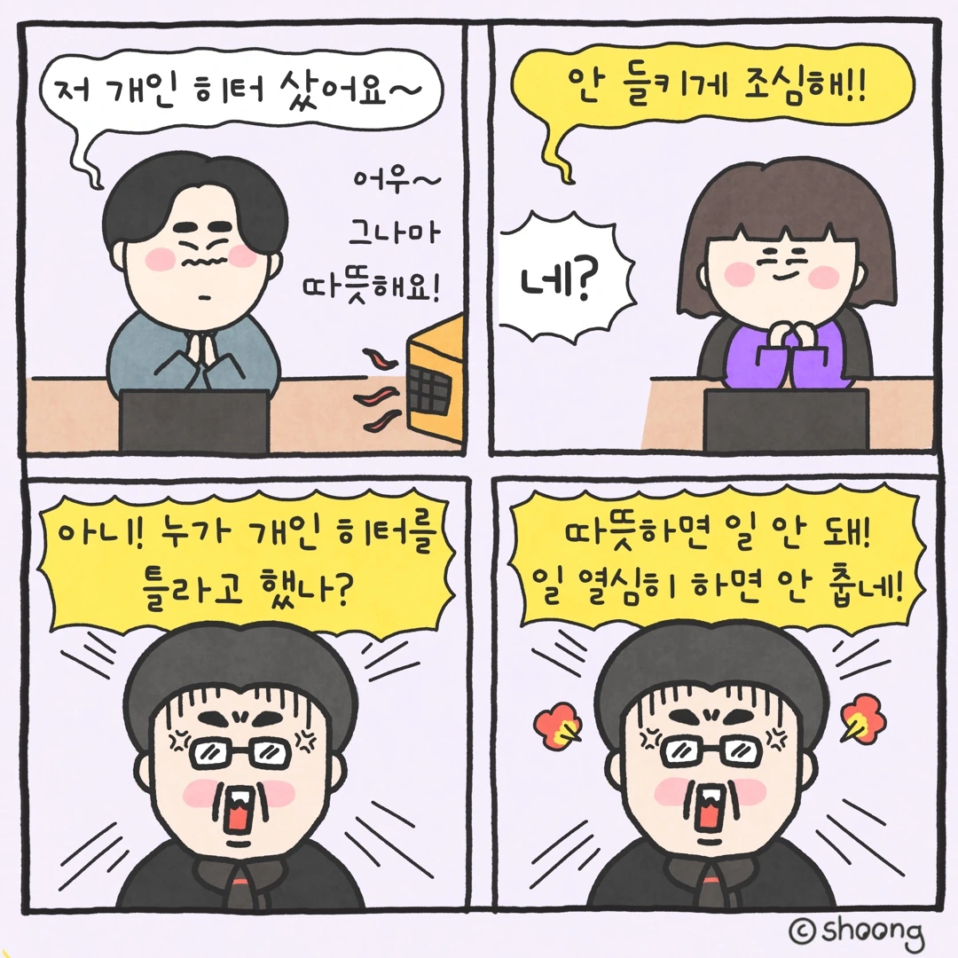 ”누가!!! 개인 히터를 쓰라고 했나!!”