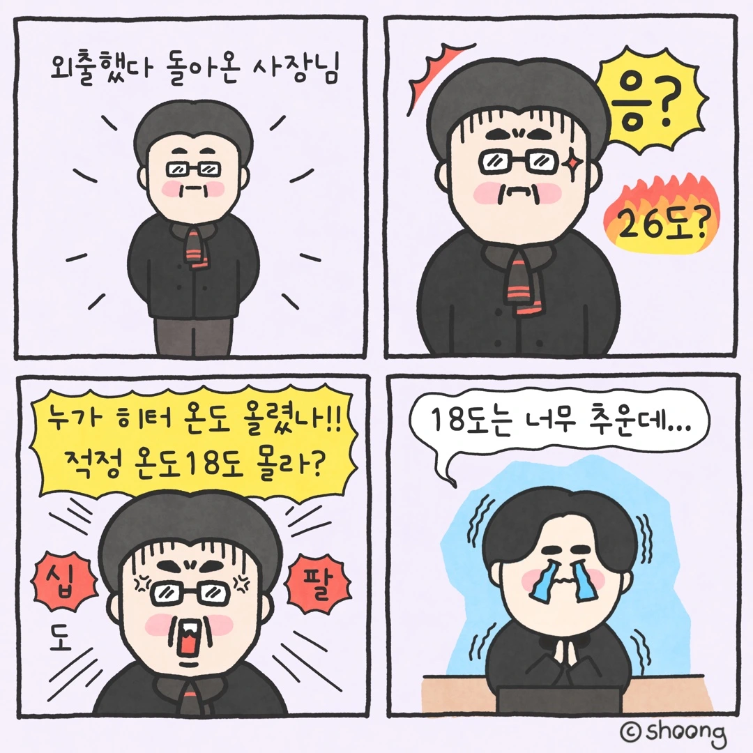 ”사무실 적정 온도 18도!!! 18!!! 도!!! 모르나? “