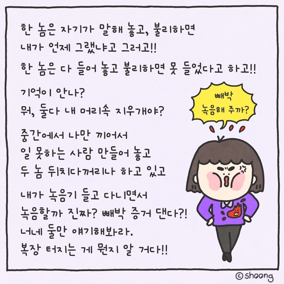 일 시키려고 설명해 줄 땐 메모도 안 하고 듣고만 있다가 불리한 일이 생기면