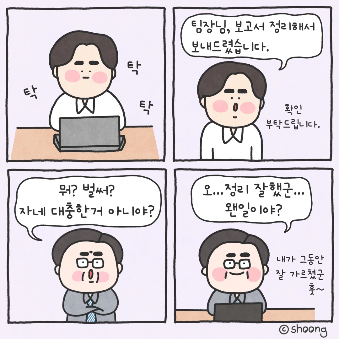 “팀장님, 보고서 정리해서 보내드렸습니다. 확인 부탁드립니다.”