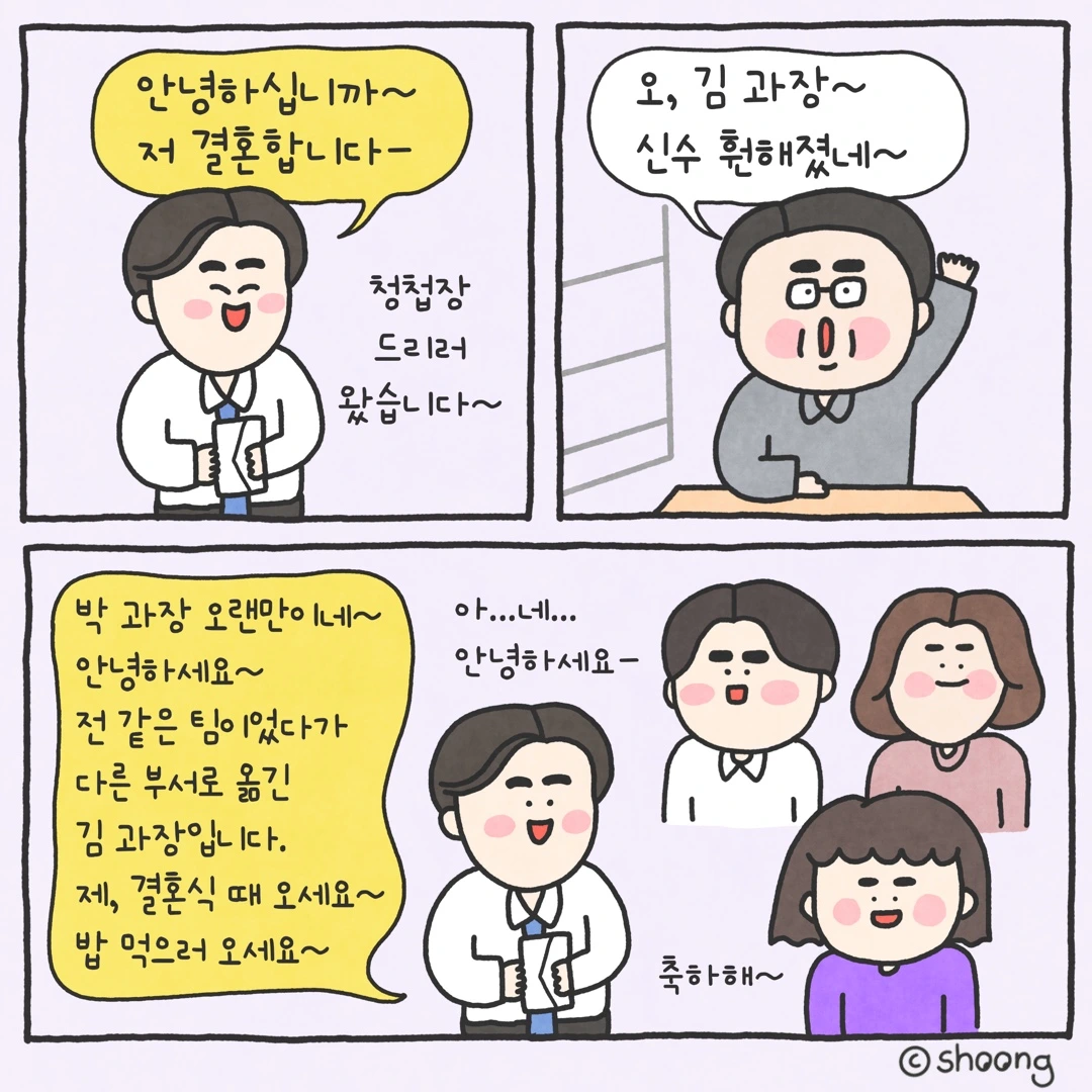 아침부터 정신 쏙 빼어 넣고 청첩장을 유유히 돌린 뒤 돌아간 김 과장
