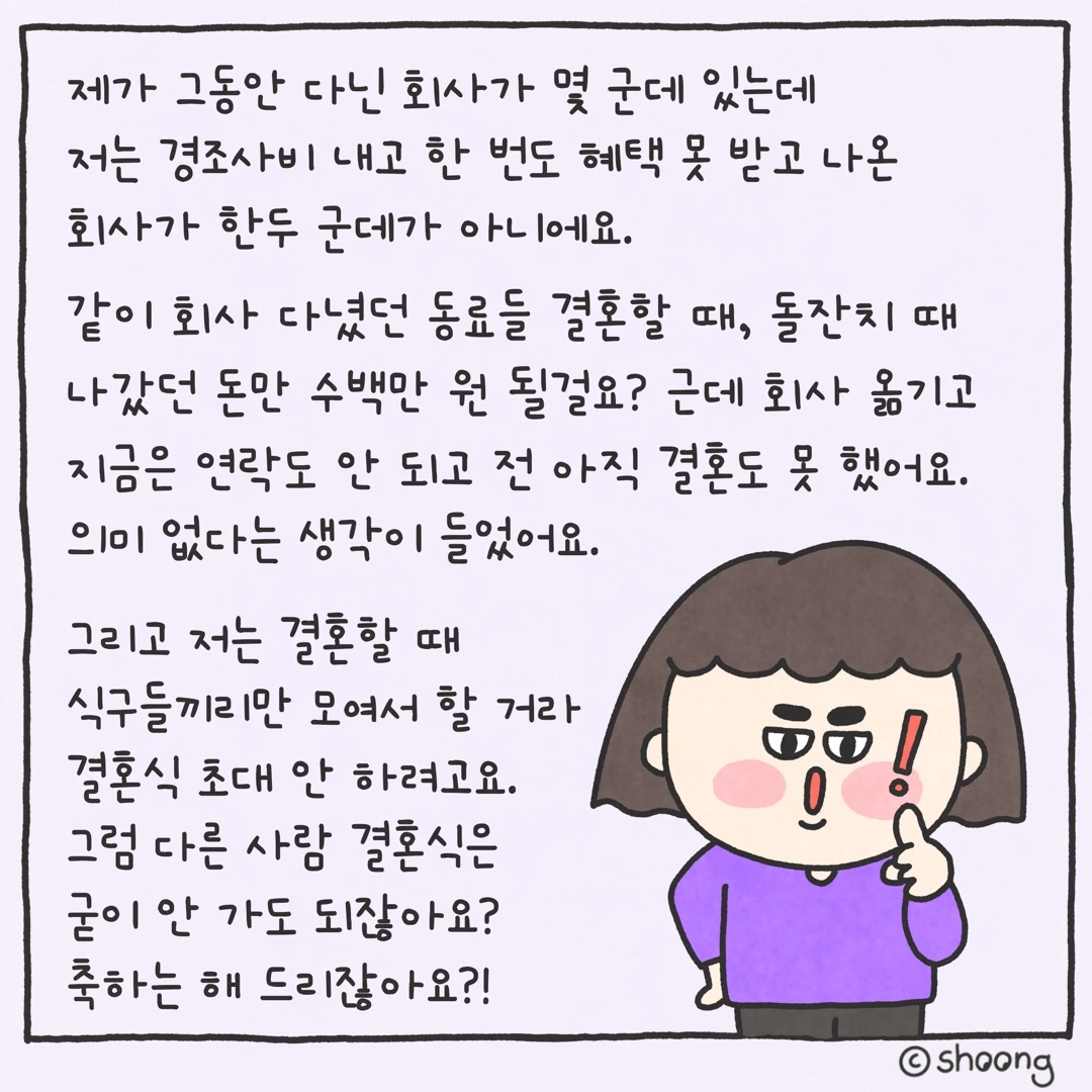“그동안 제가 회사 다니면서 쏟아부은 경조사 비만 수백만 원이에요.”