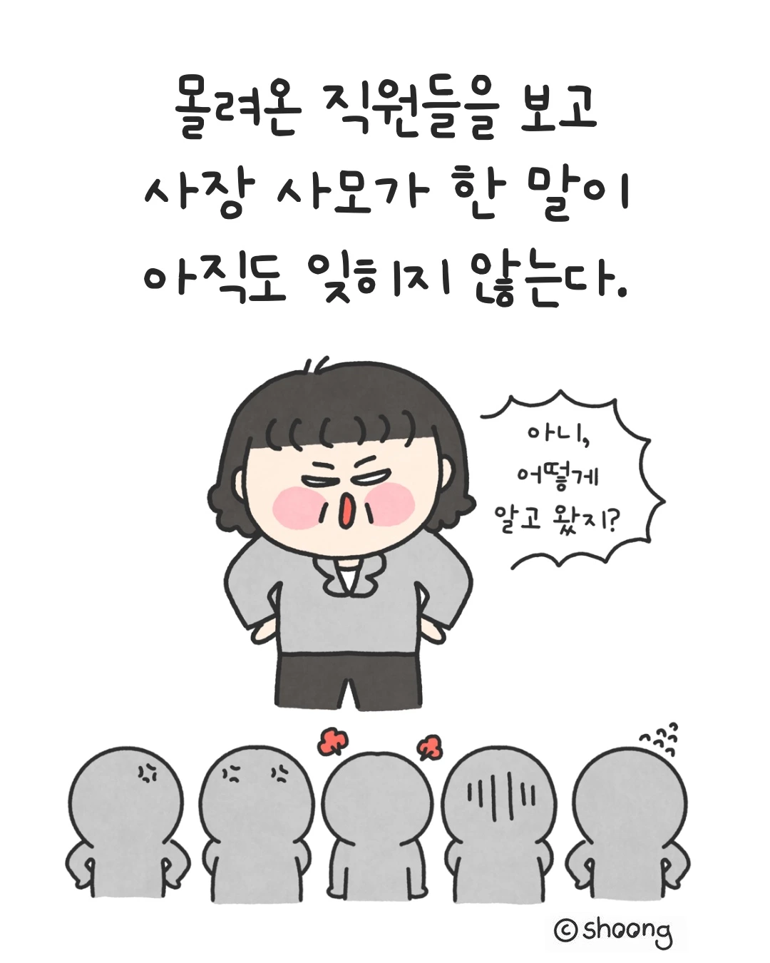 우루루루 몰려간 직원들 얼굴을 알아본 사장 사모가 그들에게 다가와