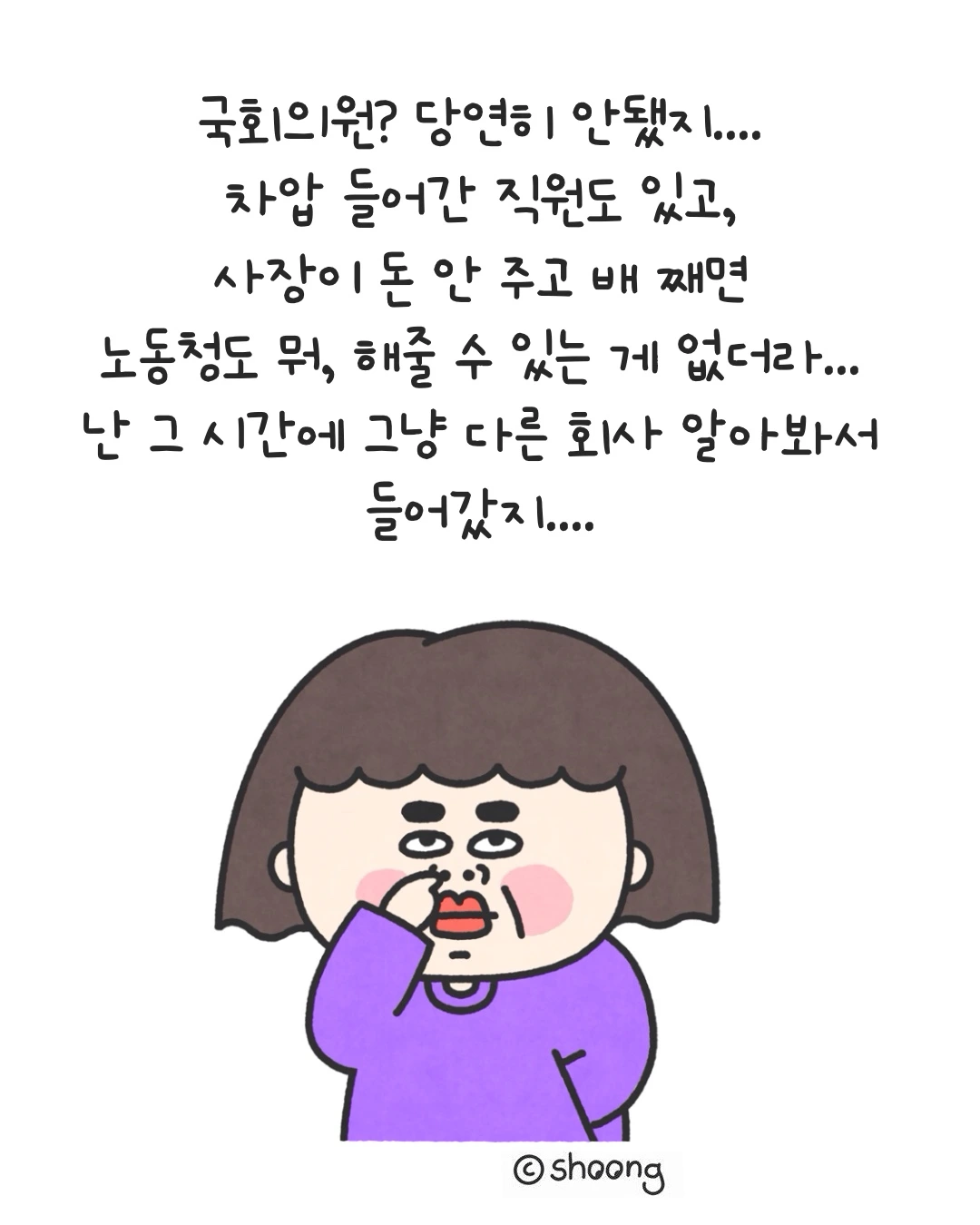 ‘사장이 돈을 안 주면 어쩔 수 없다’라는 말 밖에 해주지 않는 노동청도 있었다.