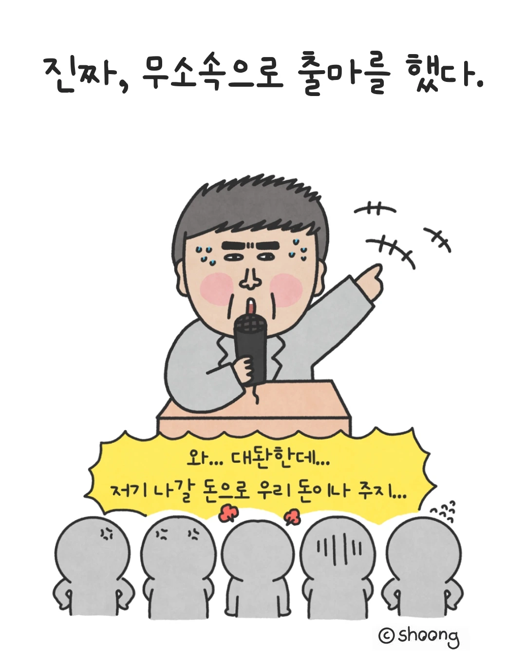 정말 무소속 국회의원으로 출마를 했고 연설을 하고 있었다.