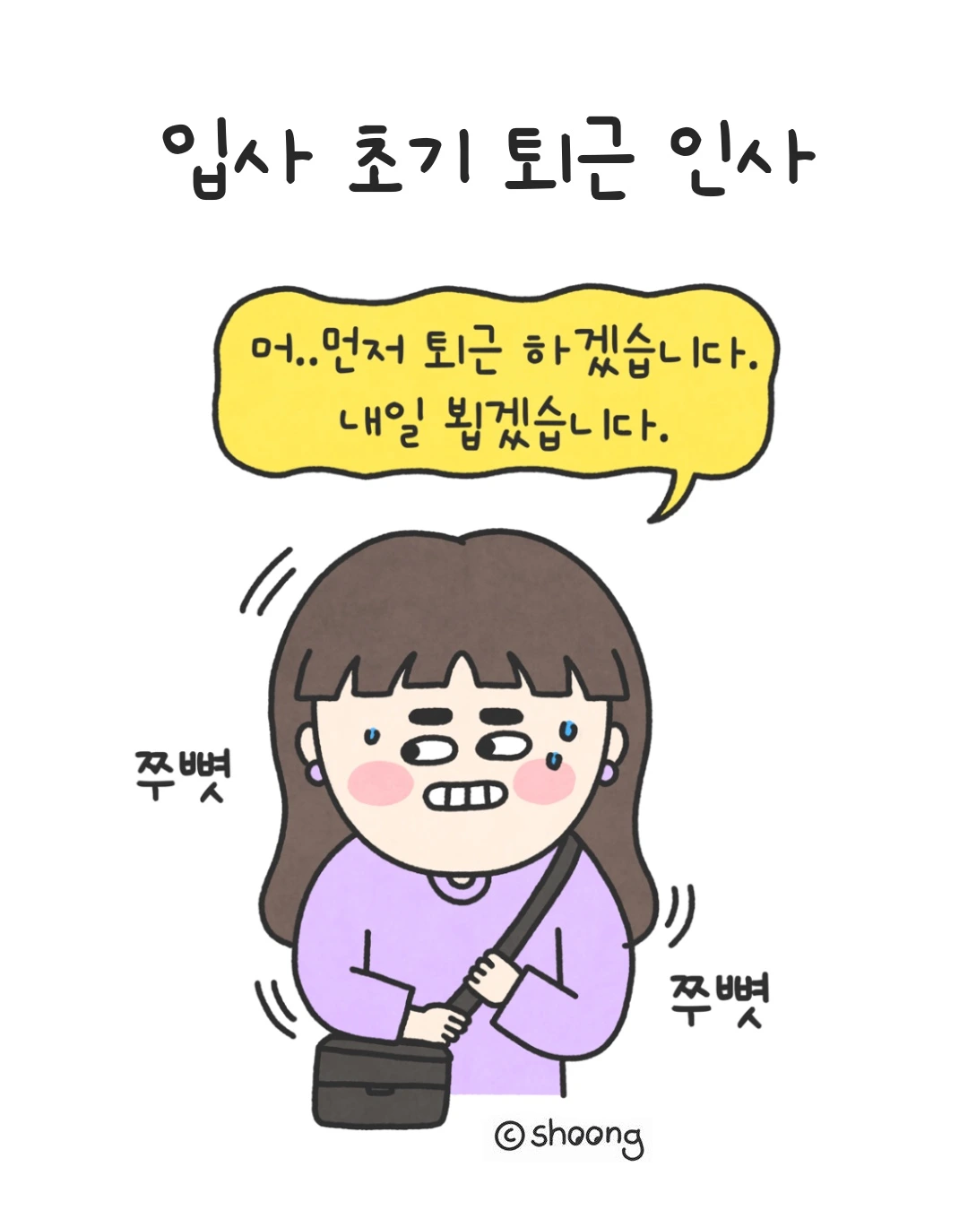 “칼퇴할 때도 가방 메고 나가는 것보다 가방 없이 퇴근하면 덜 눈치 보여...ㅋㅋㅋㅋ“