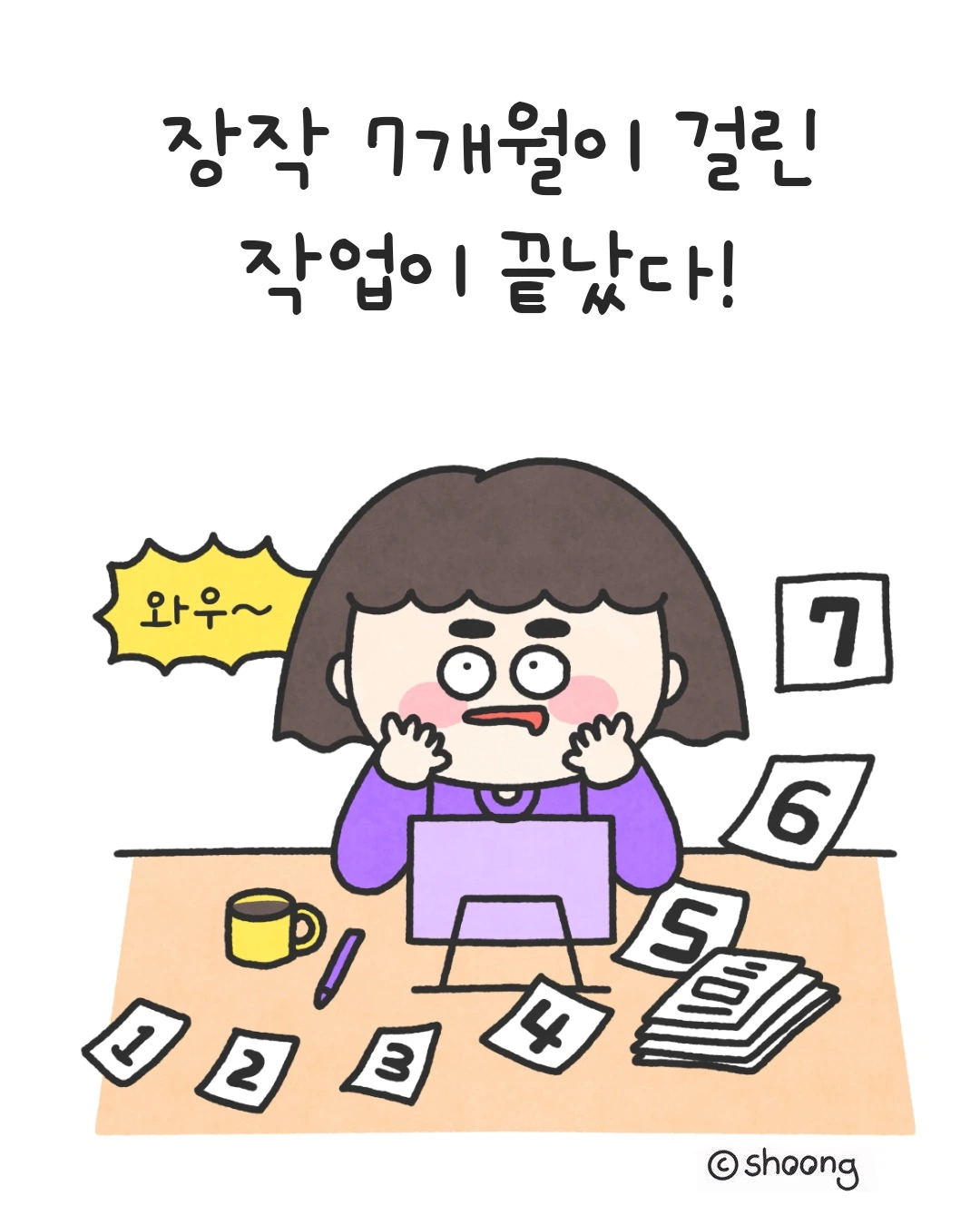1월부터 7월까지 어린이 도서 책 삽화 작업을 맡아 작업을 하고 있었고, 7월에 긴 여정의 작업을 마무리했다.