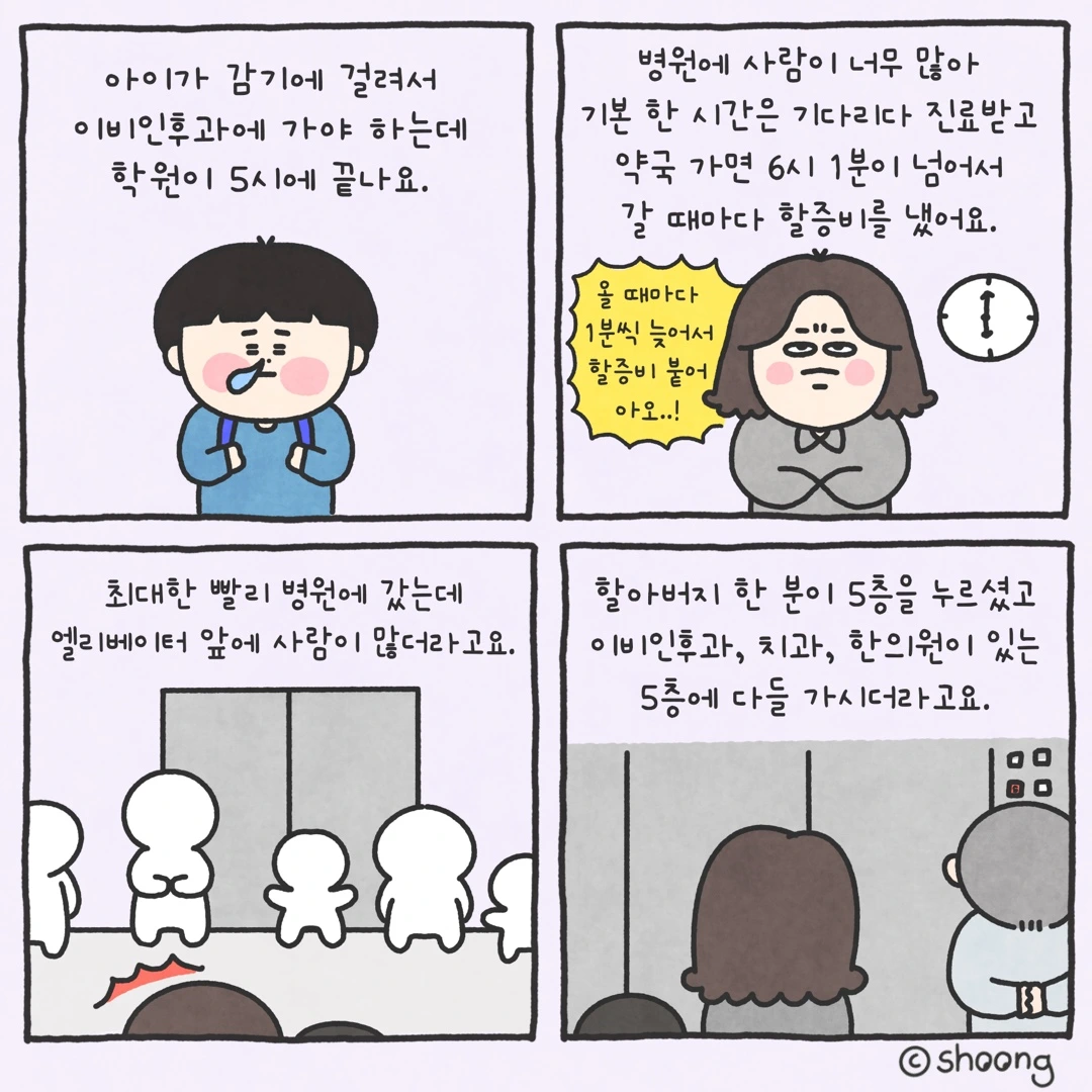 아이가 감기에 걸린 것 같아서 이비인후과를 가려고 하는데, 학원을 다니고 있어서 5시에 병원을 가야 했어요.