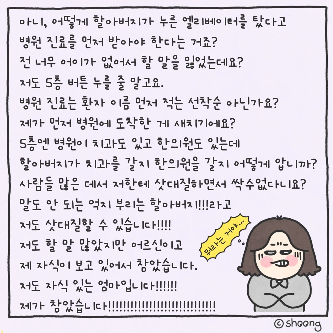 ‘할아버지가 5층을 누른 엘리베이터를 타고 왔는데 제가 먼저 와서 접수하는데 새치기를 한 거라고요?’ 병원은 접수 먼저 하는 선착순 아닌가요?