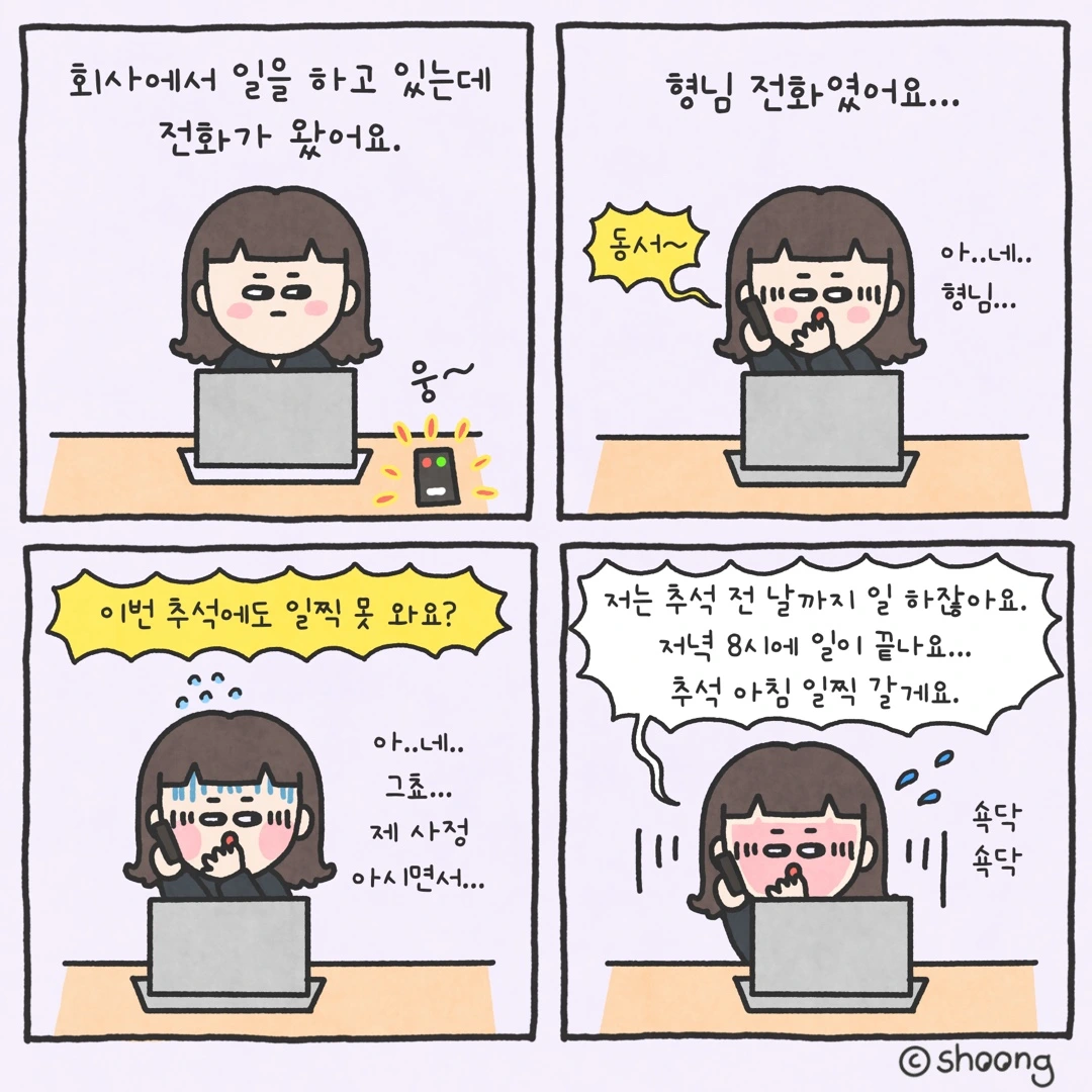- ”동서는 추석날 와서 아무것도 안 하잖아요. “