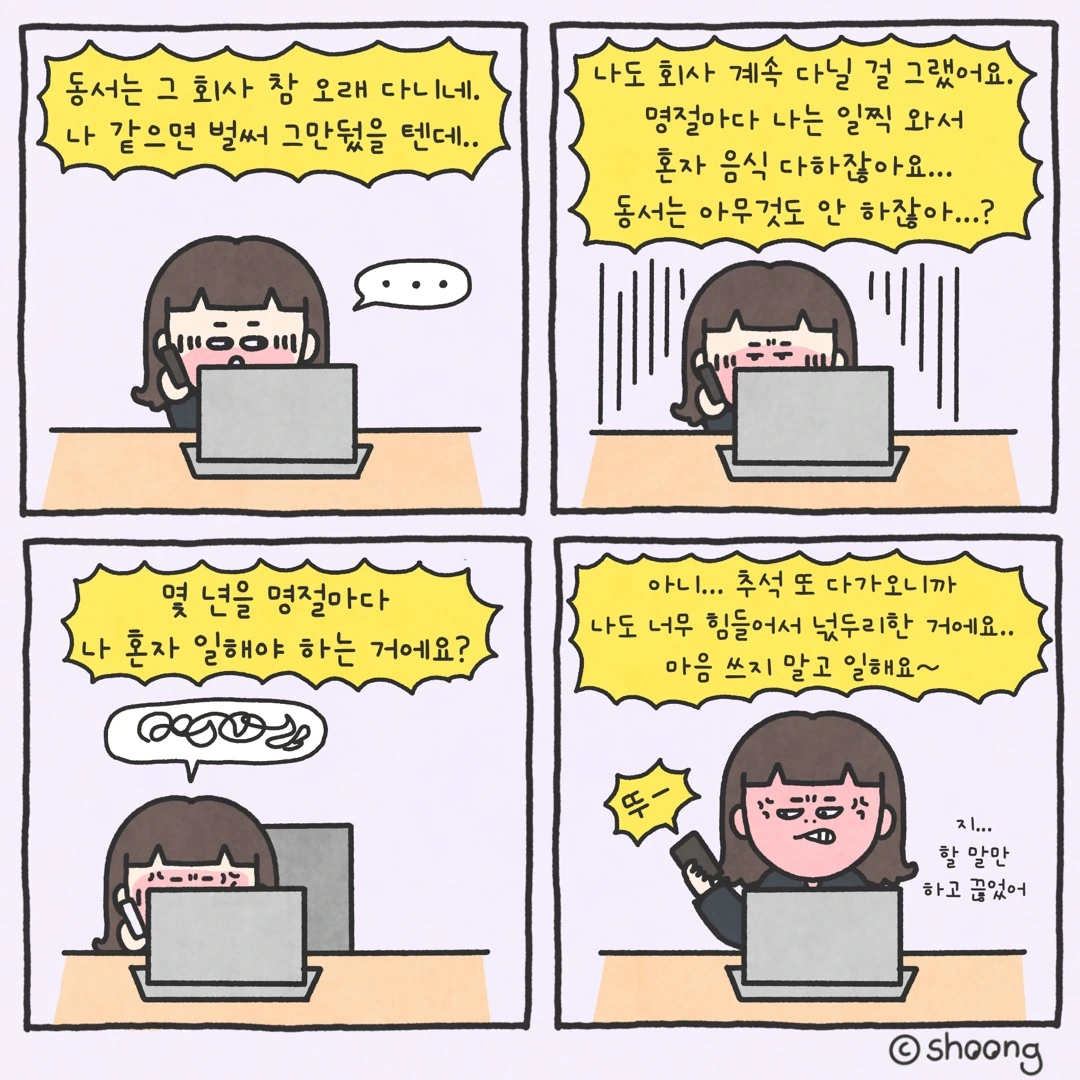 - “아니 동서는 그런 회사 뭐 하러 계속 다녀요?”
