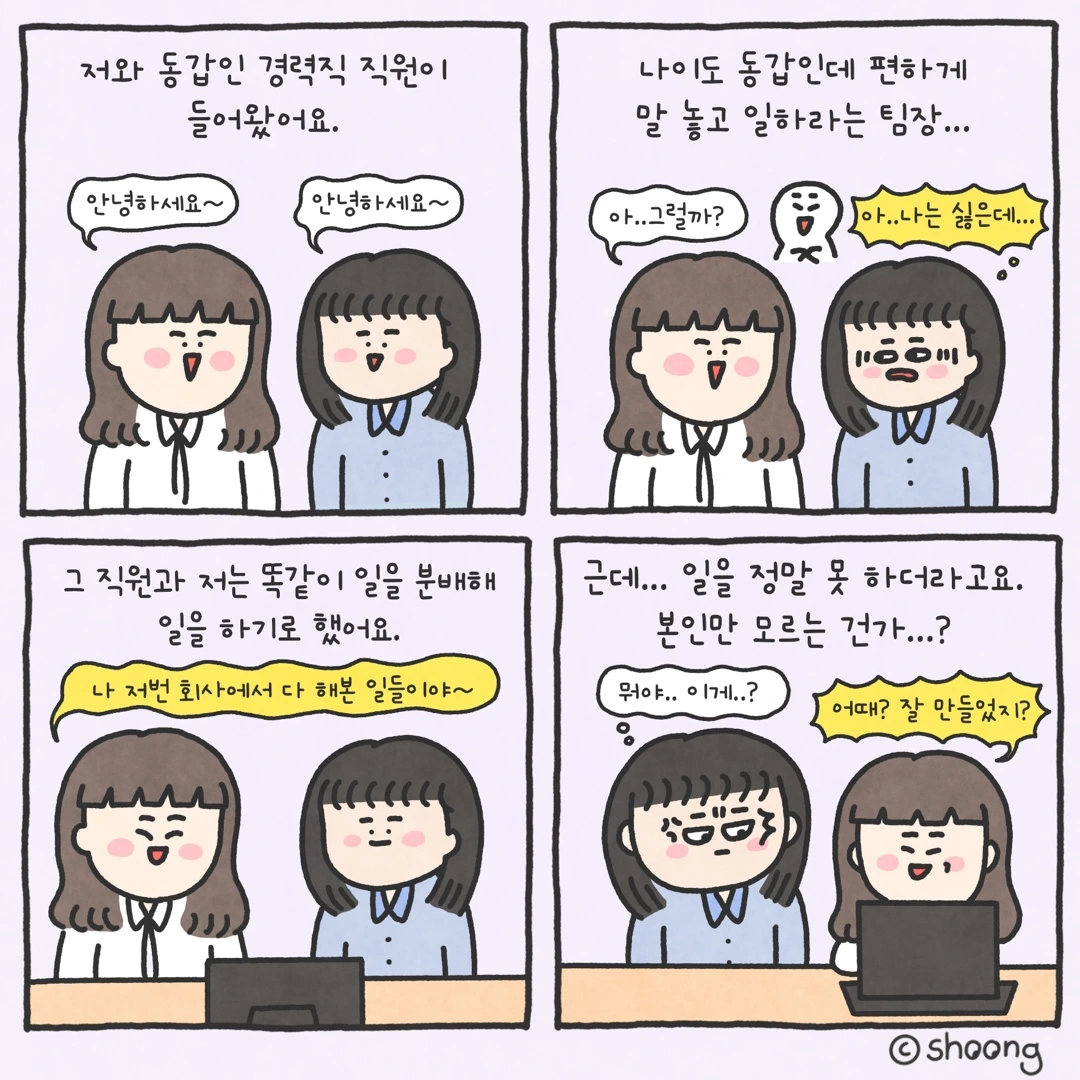 팀장님은 서로 동갑인데 말도 놓고, 친하게 지내지만 제가 경력도 더 많고, 이 회사에서 오래 일을 했기 때문에 그 직원에게 일을 분배해 주라고 팀장님이 업무지시를 내려주셨습니다.