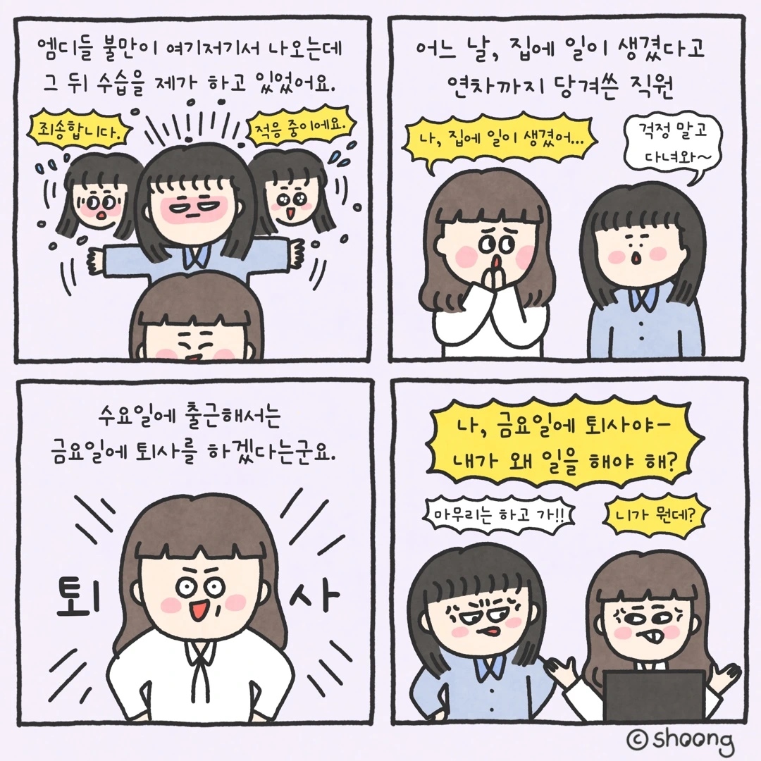 “내가 왜? 나 금요일에 퇴사할 건데? “