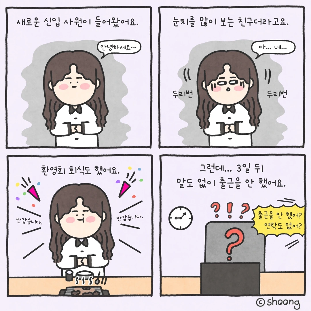 입사하고 3일째 되던 날 아침, 그 친구가 연락도 없이 출근을 안 했어요. 연락두절된 직원에게 몇 번 전화를 걸었더니 그만두겠다고 문자만 보내왔어요.