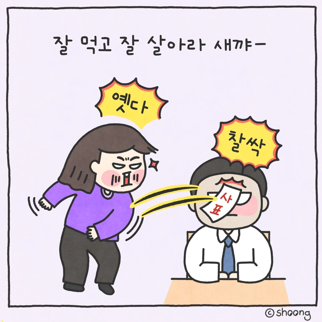 사장(님) 면상에 사직서 날려주는 그림