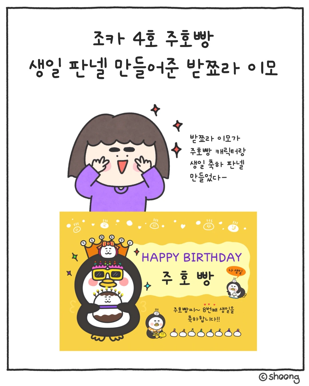 주호빵 생일 판넬을 만들어 달란다.