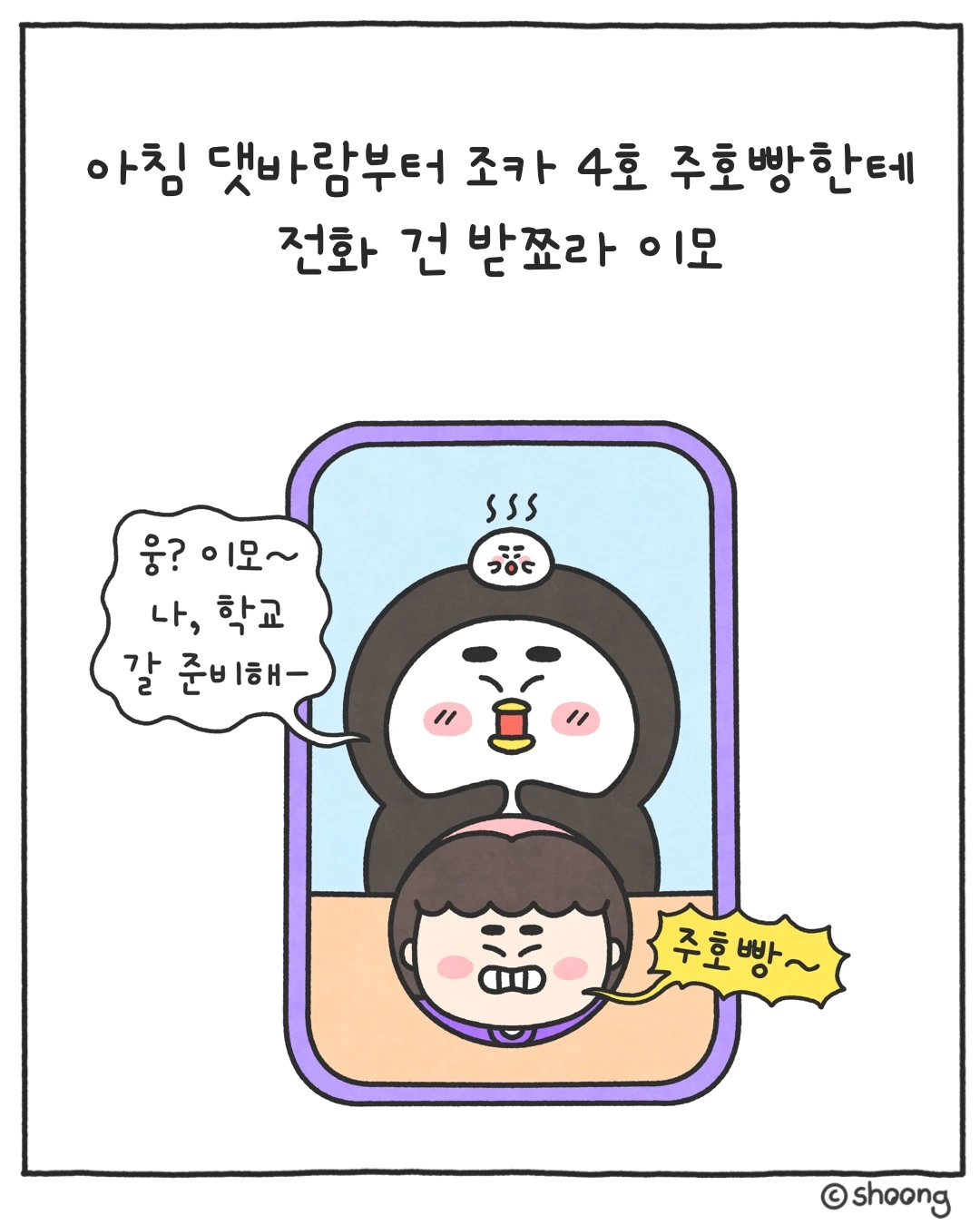 아침 댓바람부터 영상통화를 건 받쬬라 이모