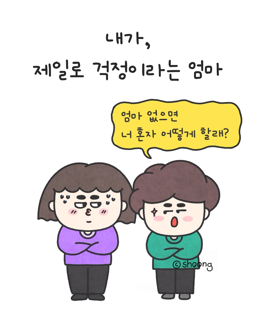 엄마는 종종 묻는다. “엄마 없으면 너 어떡할래?” 나는 그럴 때마다 웃으며 말한다. “그러니까 오래 살아야지... 나, 두고 가지 마.”