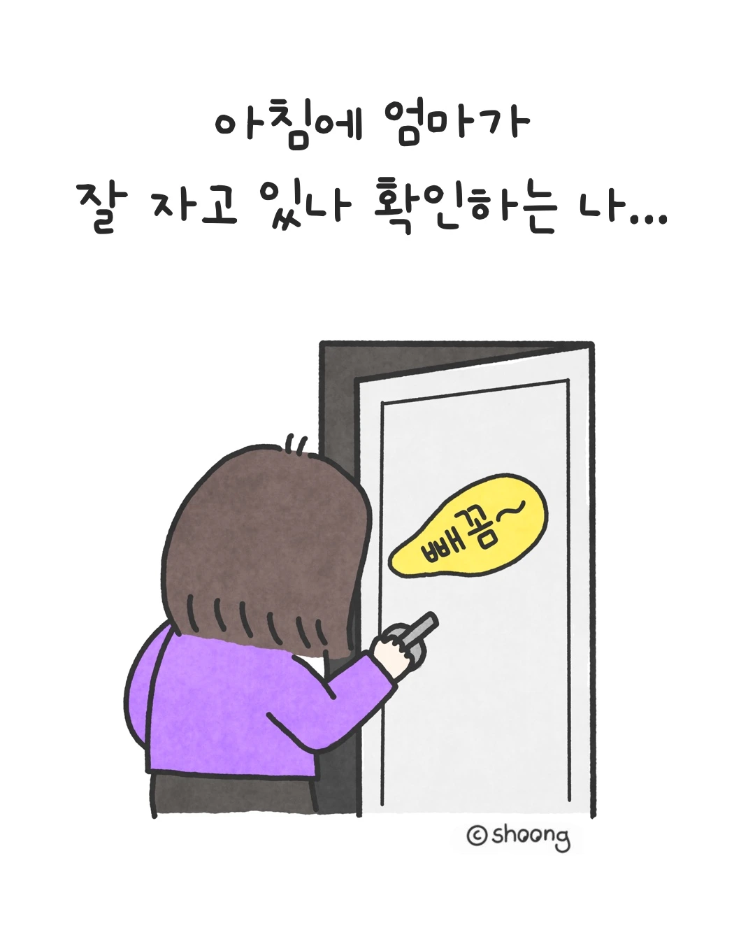 확인을 한지 몇 년 됐다. 엄마가 잘 자고 있는지, 숨소리가 들리는지 조심스레 확인하게 된다.