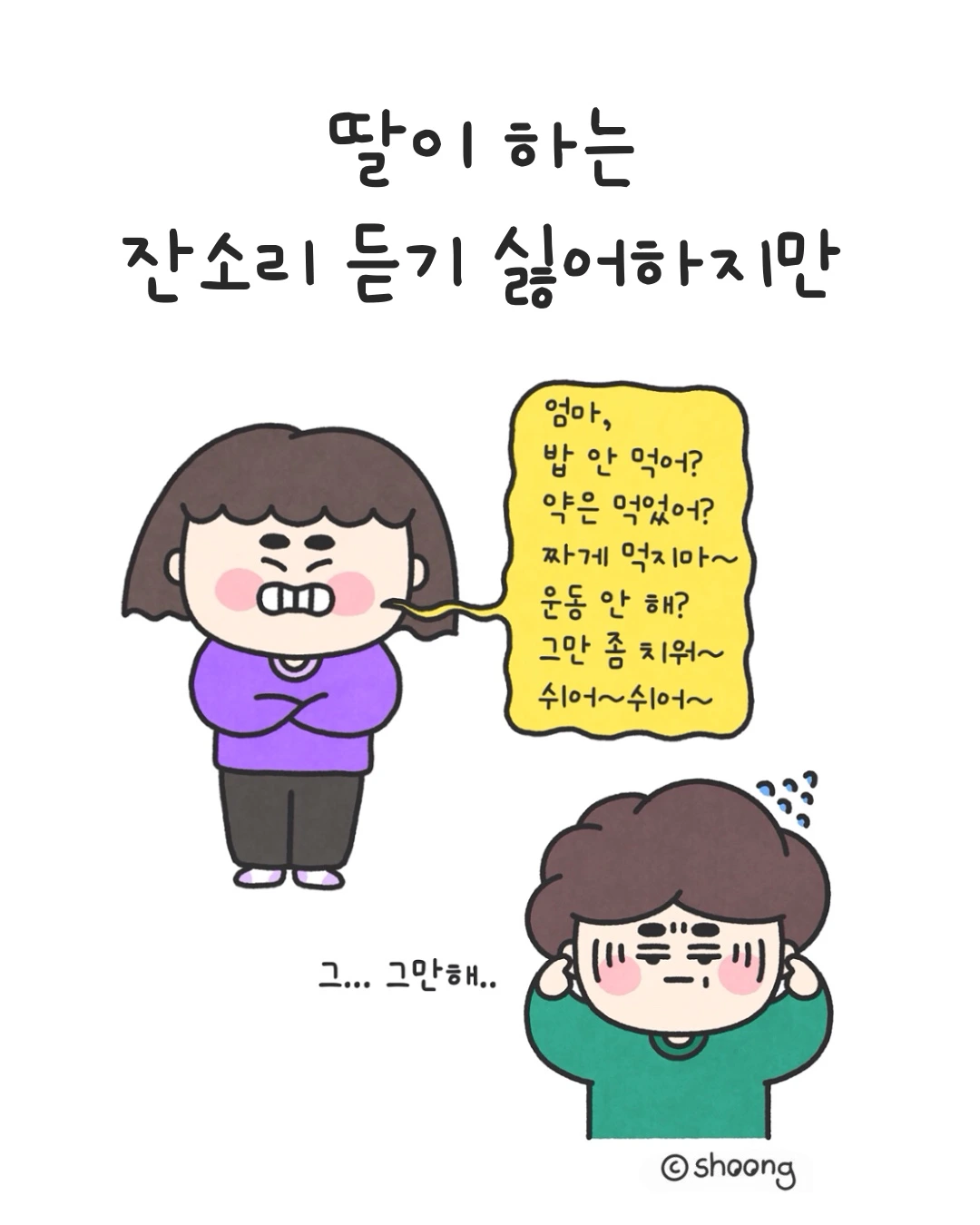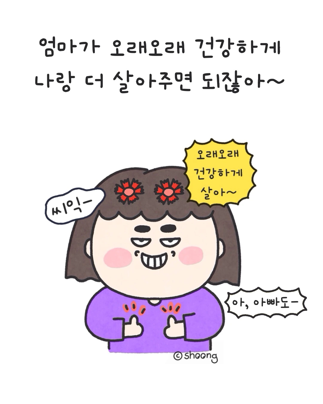 엄마, 나랑 오래오래 건강하게 살자. 오래오래 내 옆에 있어줘. 엄마의 손길, 목소리, 냄새, 잔소리까지 나는 다 좋아~
