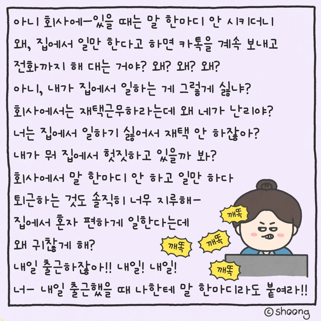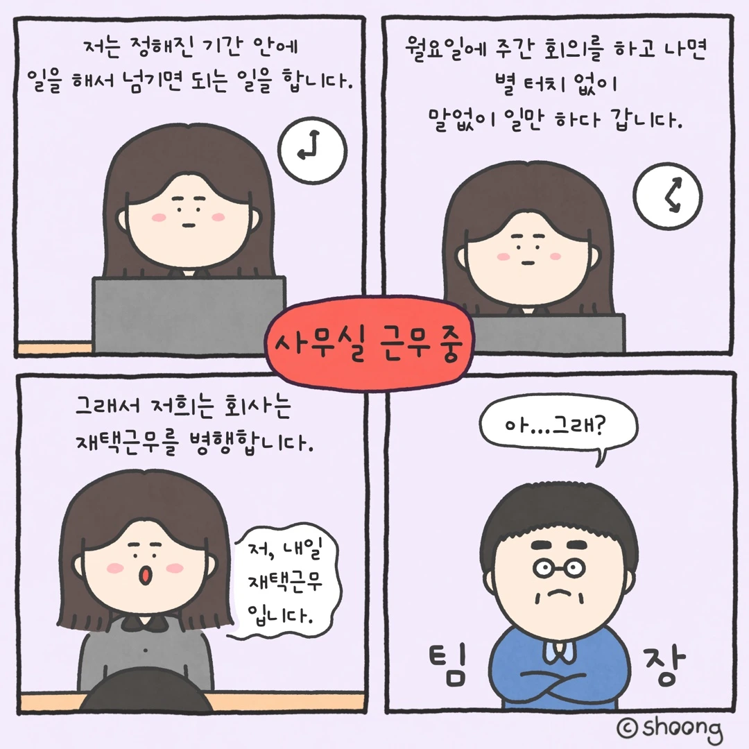 팀장님은 집에서 일하기 싫어서
