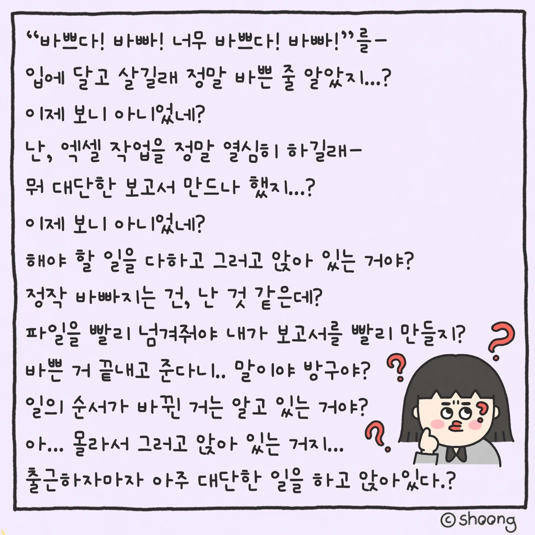 저희 팀에 맨날 “바쁘다 바빠”