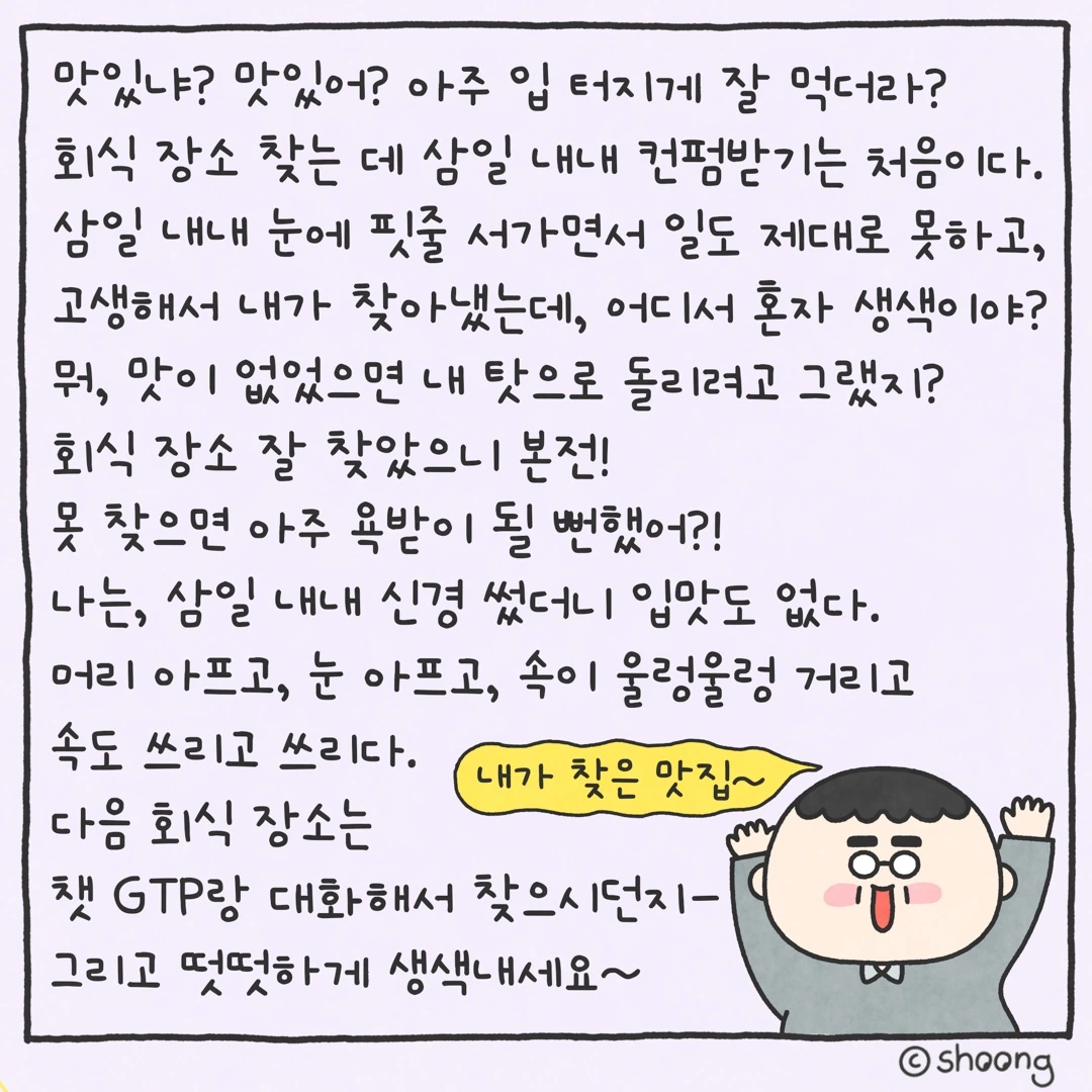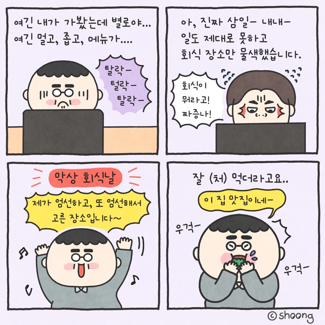 그래도 삼일 동안 회식장소 뒤져가며 고생한 저에게