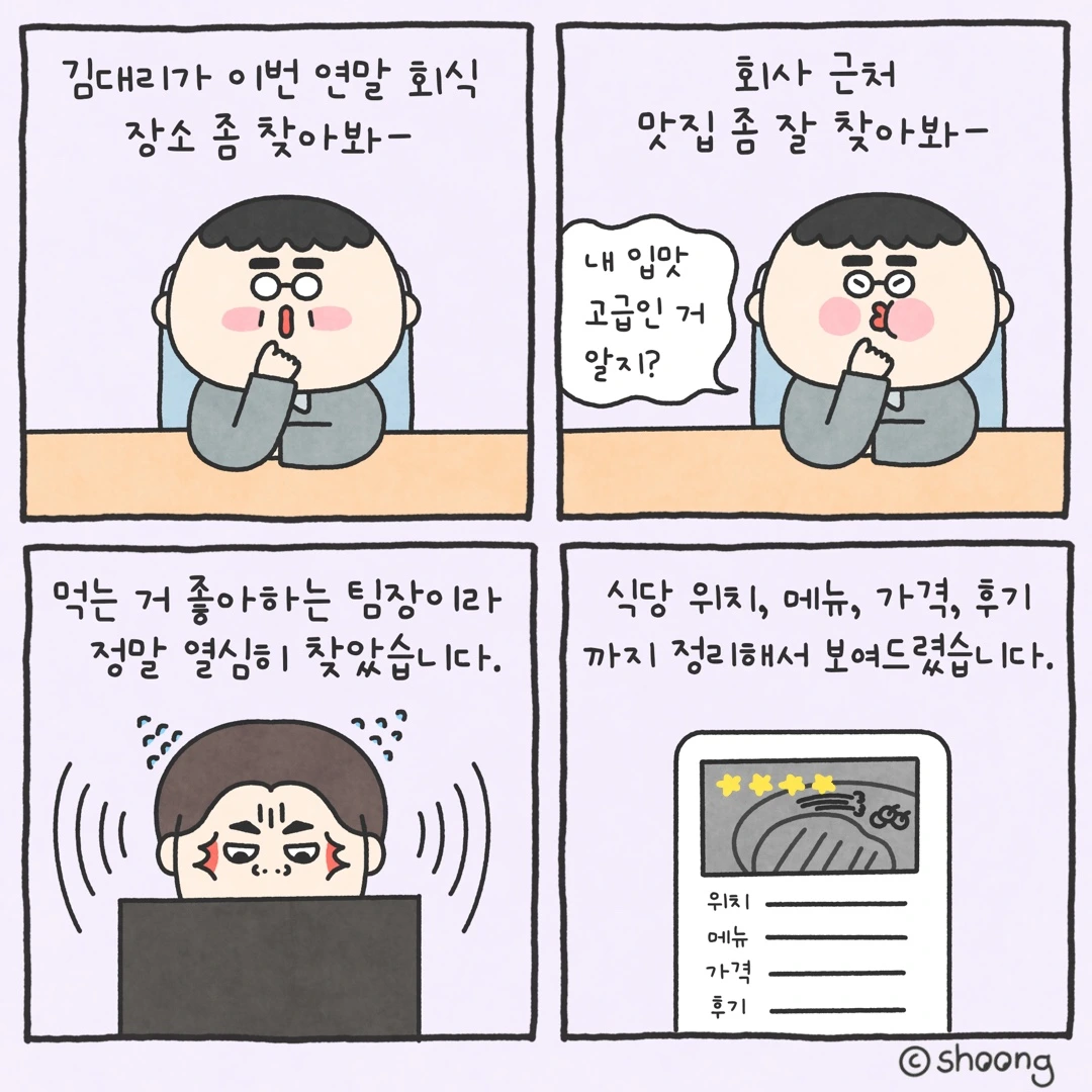 팀장님이 저보다 맛집 훨씬 잘 아시는 분이거든요.